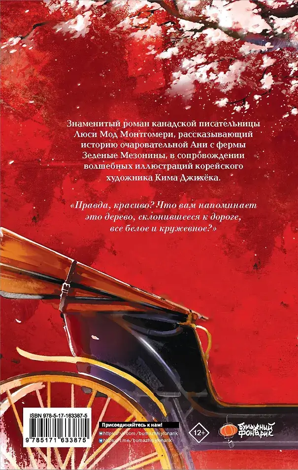Знаменитый роман канадской писательницы Люси Мод Монтгомери (1874–1942) увидел свет в 1908 году и до сих пор не теряет свою актуальность. В результате ошибки сирота по имени Аня Ширли попадает на ферму Зеленые Мезонины к брату и сестре Мэтью и Марилле Касберт. И с течением времени удивительная девочка с богатым воображением покоряет и согревает сердца жителей Авонлеи. Книга публикуется в переводе М. Ю. Батищевой, а также содержит удивительные и воздушные иллюстрации корейского художника Кима Джихёка. Для широкого круга читателей.