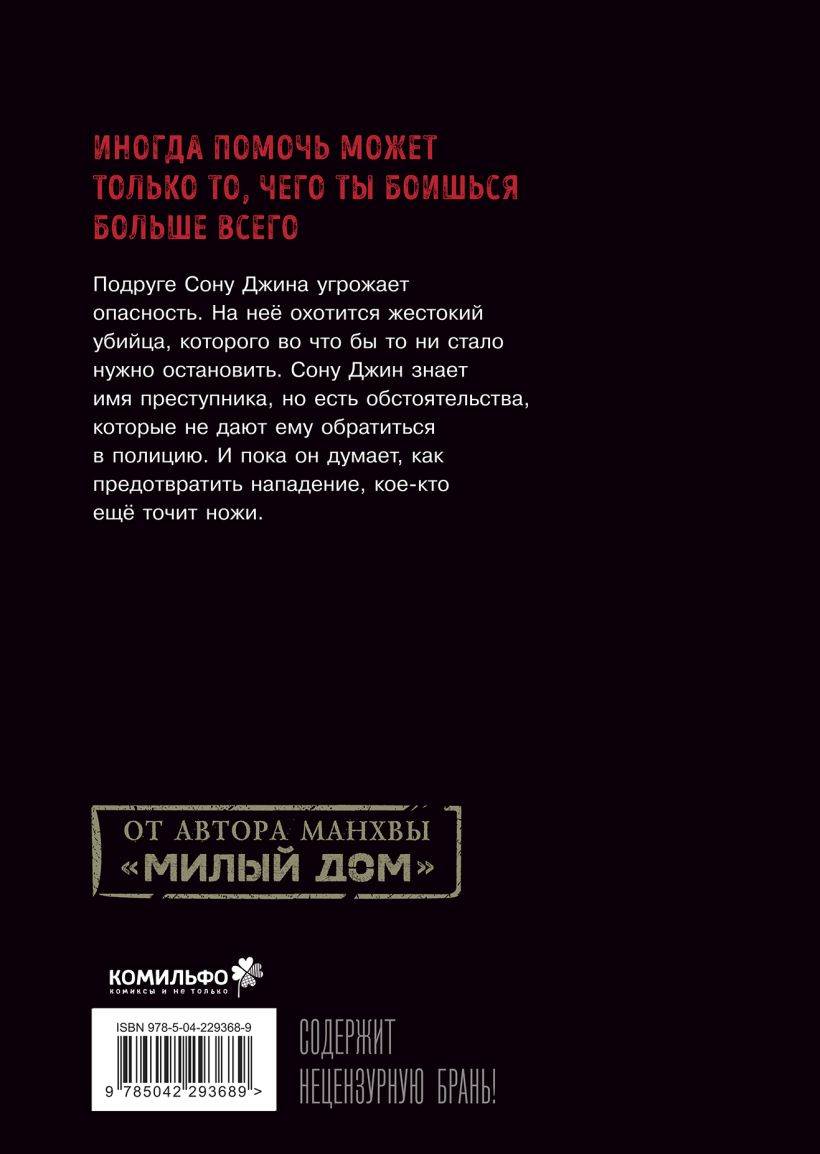 Иногда помочь может только то, чего ты боишься больше всего. Подруге Сону Джина угрожает опасность. На неё охотится жестокий убийца, которого во что бы то ни стало нужно остановить. Сону Джин знает имя преступника, но есть обстоятельства, которые не дают ему обратиться в полицию. И пока он думает, как предотвратить нападение, кое-кто ещё точит ножи. Самая ожидаемая манхва талантливого корейского сценариста, автора "Милого дома" — Кима Карнби.