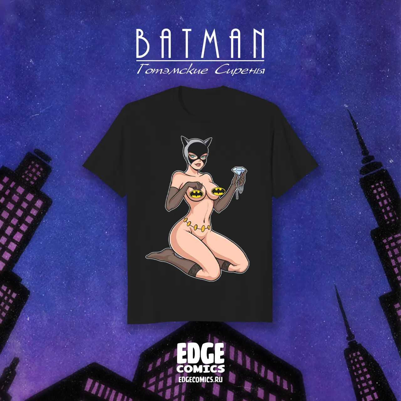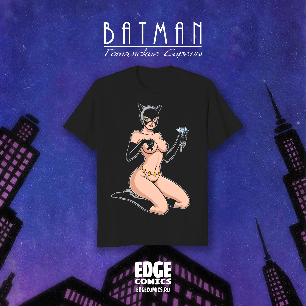Футболка с Селиной Кайл из сериала Batman: The Animated Series от Сергея Сурменко. У футболки три варианта: обычный, в купальнике и эксклюзивный (18+), доступный ограниченное время.