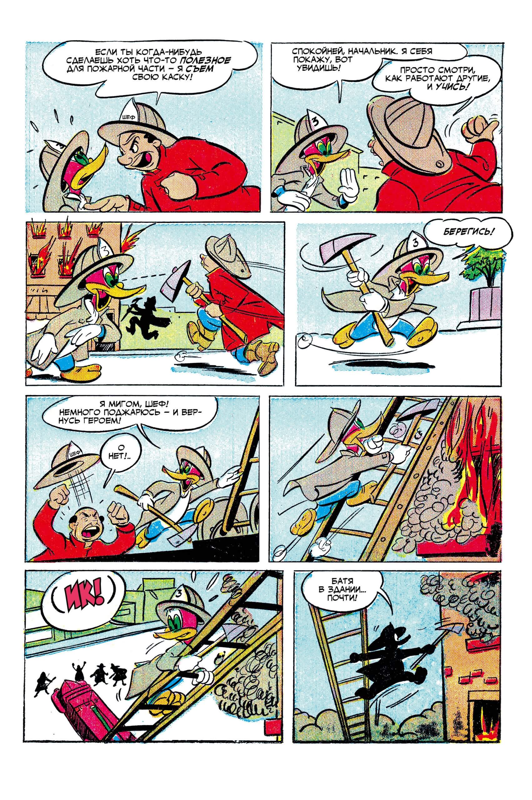 СОДЕРЖАНИЕ: «Нашествие уток» (The Duck Catcher) — Walter Lantz Woody Woodpecker #34 (декабрь 1955), Dell; «Правило первого клиента» — Walter Lantz Woody Woodpecker's Back to School #1 (октябрь 1952), Dell; «Теперь пожарный» — Walter Lantz New Funnies #162 (август 1950), Dell; «Золотая лихорадка Голубя Гомера» — Walter Lantz Woody Woodpecker's Back to School #1 (октябрь 1952), Dell