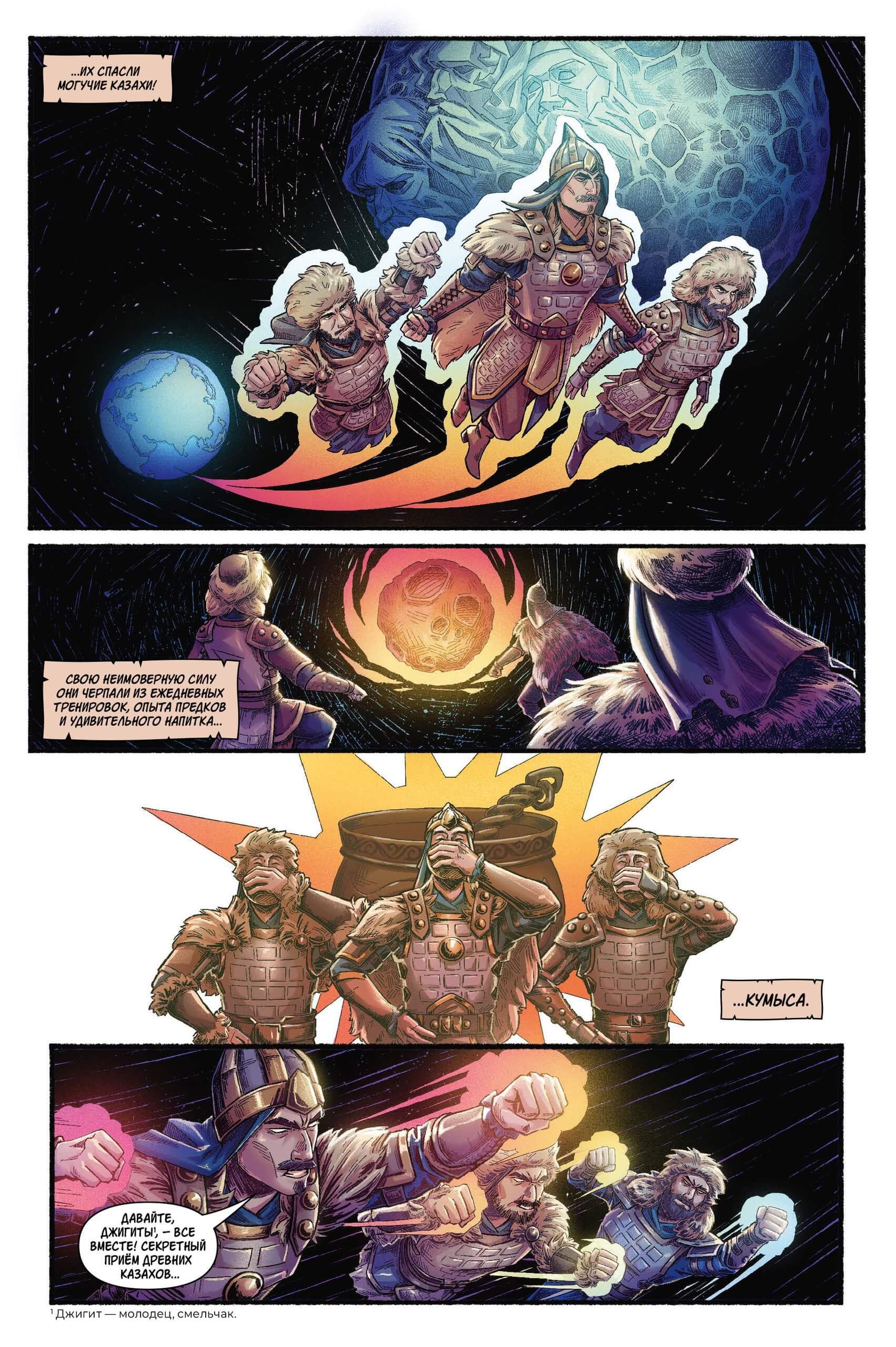 Про нескончаемую вражду русов и ящеров сложены песни, написаны книги и нарисованы комиксы, но что, если в мире есть не менее древние и необычные конфликты? Эта история знакома каждому из вас. Ну, помните? Миллионы лет назад на Земле жили тысячи динозавров, потом к планете приближался огромный астероид, несущий смерть всему живому, но в последний момент его уничтожили трое казахских батыров... Как не помните? Тогда позвольте вам рассказать эту историю! В этом нам помогут трое друзей: ловкий Жангир, здоровяк Медет и русский казах Олегбай. Их житейская разборка с бандитами, разбившими лагерь рядом с Запретным лесом, быстро превратилась в нечто большее, когда герои обнаружили там огромное яйцо динозавра...