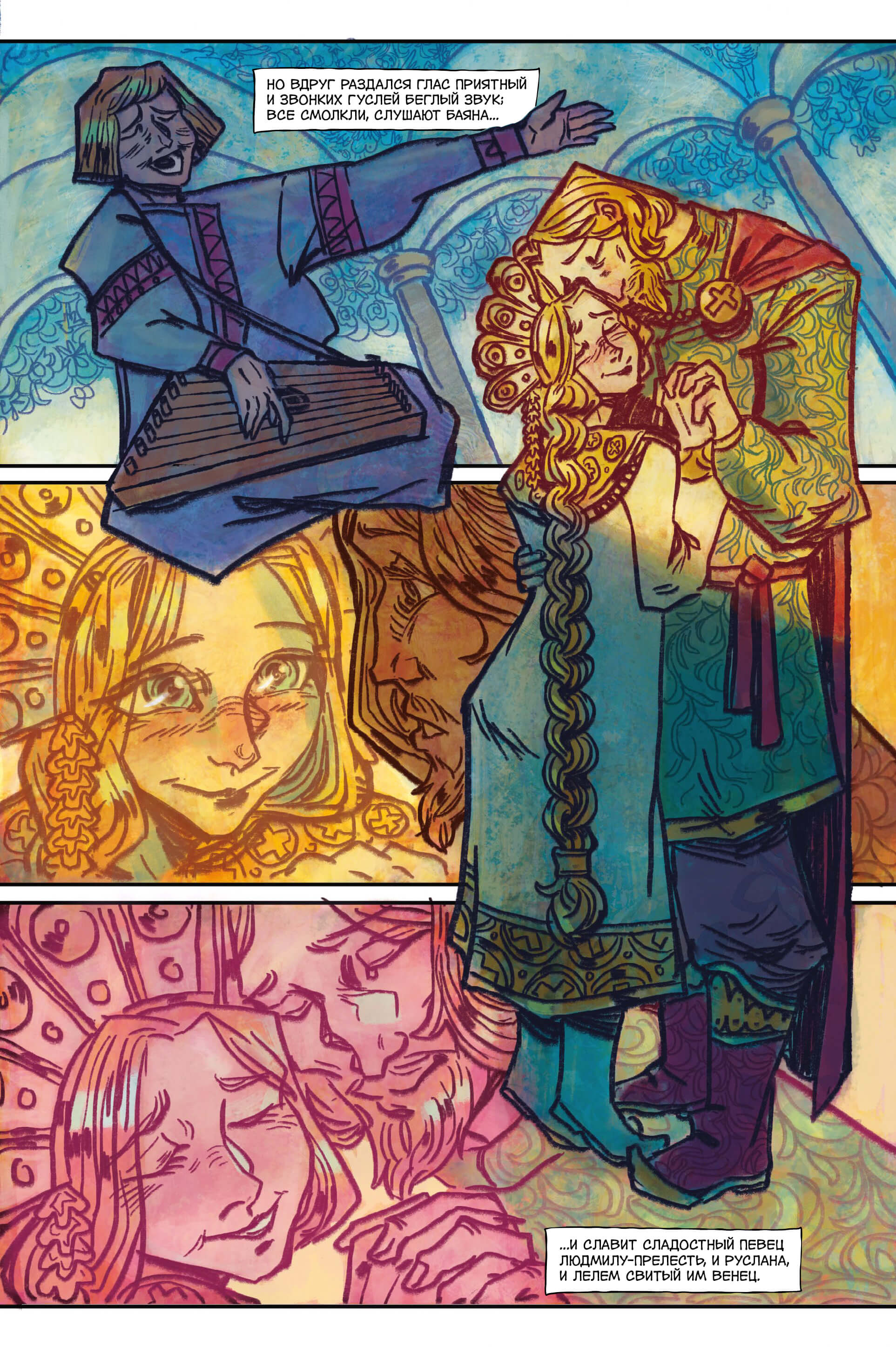 «У лукоморья дуб зелёный…». «Руслан и Людмила» — первая законченная поэма Александра Сергеевича Пушкина, впервые опубликованная в 1820 году. Знаменитая сказка была вдохновлена древнерусскими былинами, произведениями европейских классиков и «Историей государства Российского» Николая Карамзина. В центре сюжета - отважный витязь Руслан, который отправляется в опасное приключение с целью спасти свою возлюбленную Людмилу, похищенную таинственным чародеем. На пути героя ждет множество испытаний, встречи с волшебными существами и соперничество с другими искателями. Поэма «Руслан и Людмила» переиздавалась сотни раз и стала основной для театральных постановок, произведений живописи и киноэкранизаций. Мы рады представить новое прочтение классики в виде графического романа с уникальной графикой Руфуса.