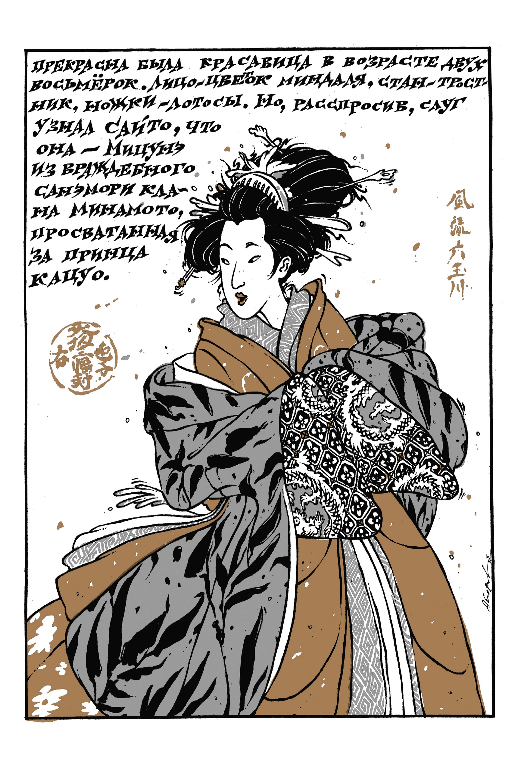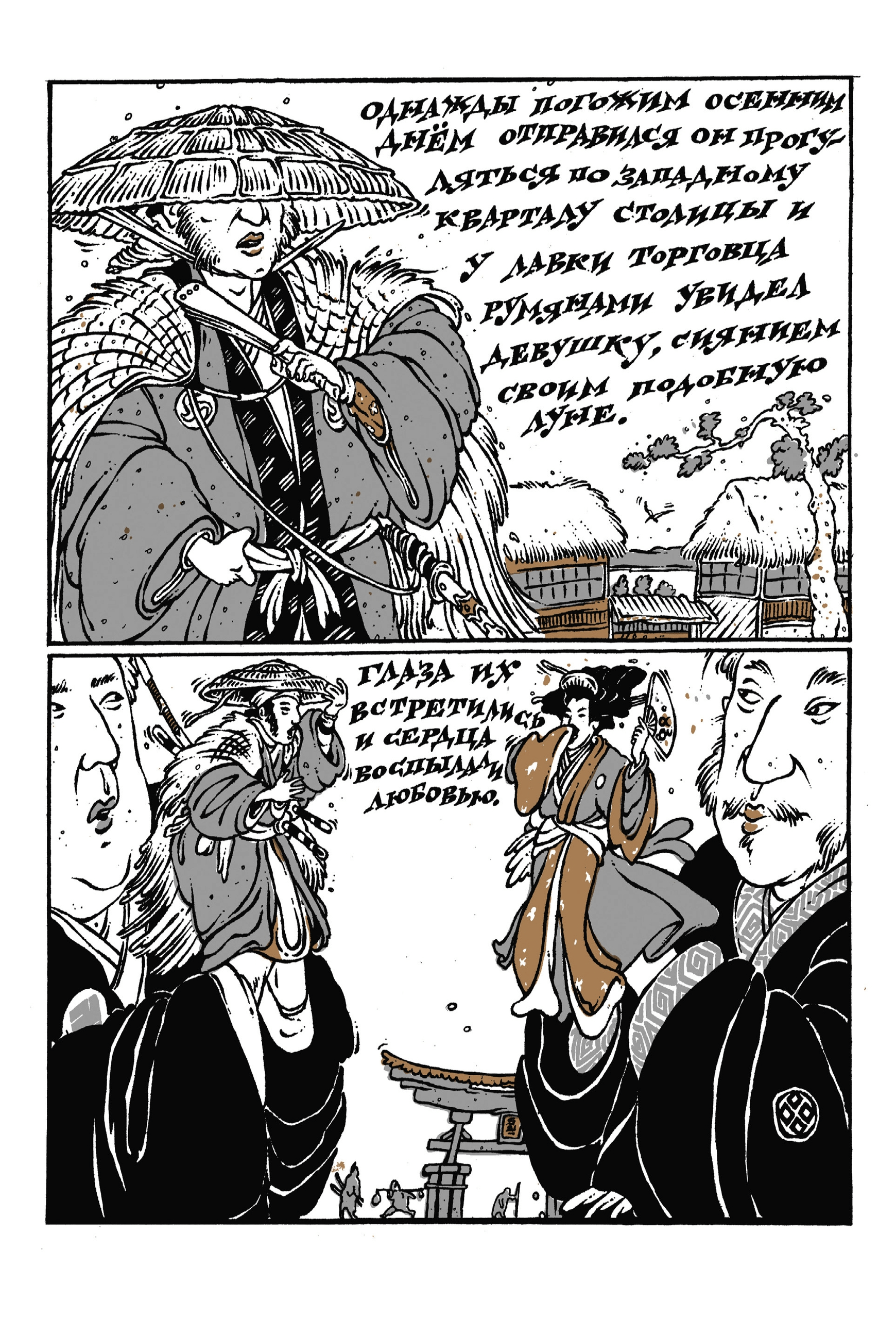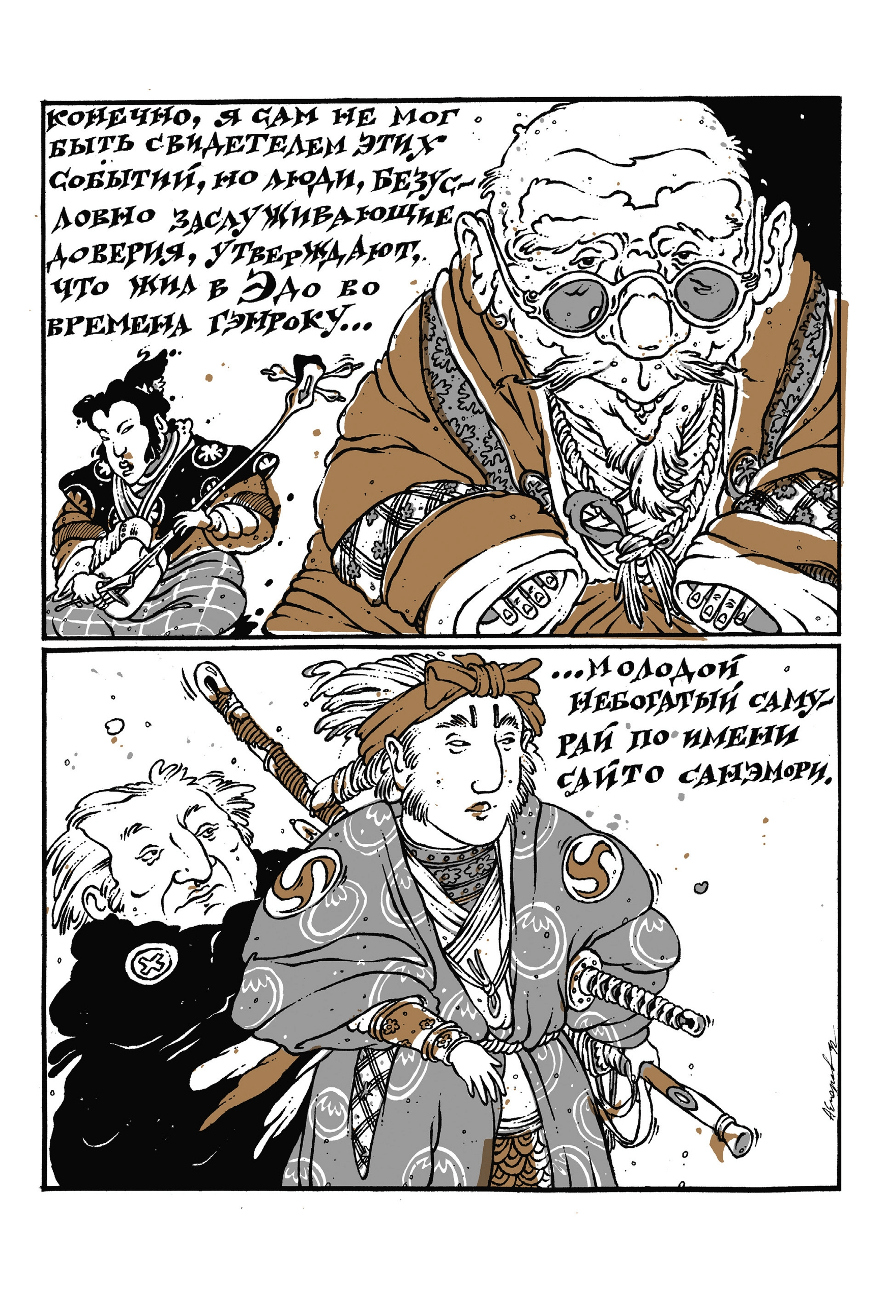 «Кукольный театр Бунраку» — комикс Александра Егорова, участника легендарного объединения «КОМ», созданный ещё в 1994 году, но публикующийся впервые. История любви небогатого самурая Сайто Санэмори и юной Мицунэ из враждебного клана Минамото. Чтобы быть с любимой, юный воин обращается за помощью к старой ведьме, но у таинственного обряда есть своя цена... Подобный сюжет, основанный на японских сказках, вдохновил легендарного Такэси Китано на создание фильма «Куклы».