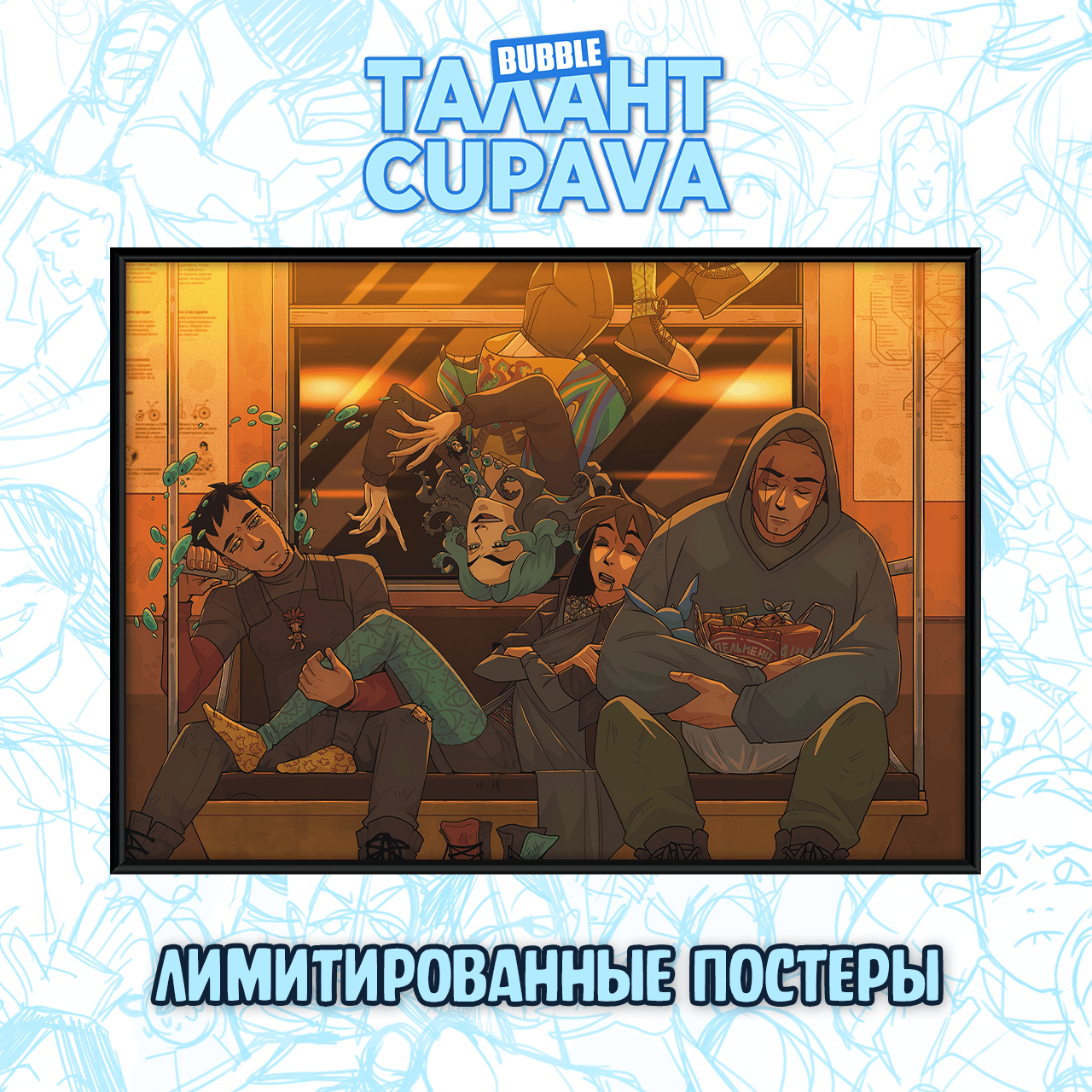 Лимитированный постер из авторской серии Талант от Cupava с командой Бесобоя, отдыхающей в метро в перерывах между сражениями с демонами!