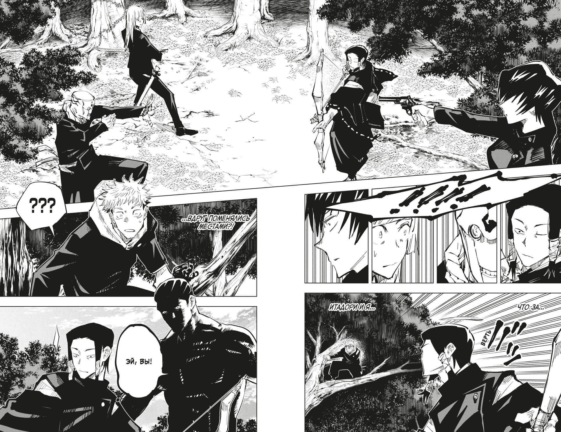 Токийские студенты принялись выполнять учебные задания, но очень быстро поняли: их противники задумали что-то ужасное. Прикрываясь соревнованиями, киотские маги собрались изгнать Сукуну из тела Юдзи Итадори – а погибнет при этом юноша или нет, им все равно. Заклинатели из Токио хотят во что бы то ни стало предотвратить убийство друга и бросаются в бой, выбрав себе оппонента по силам.