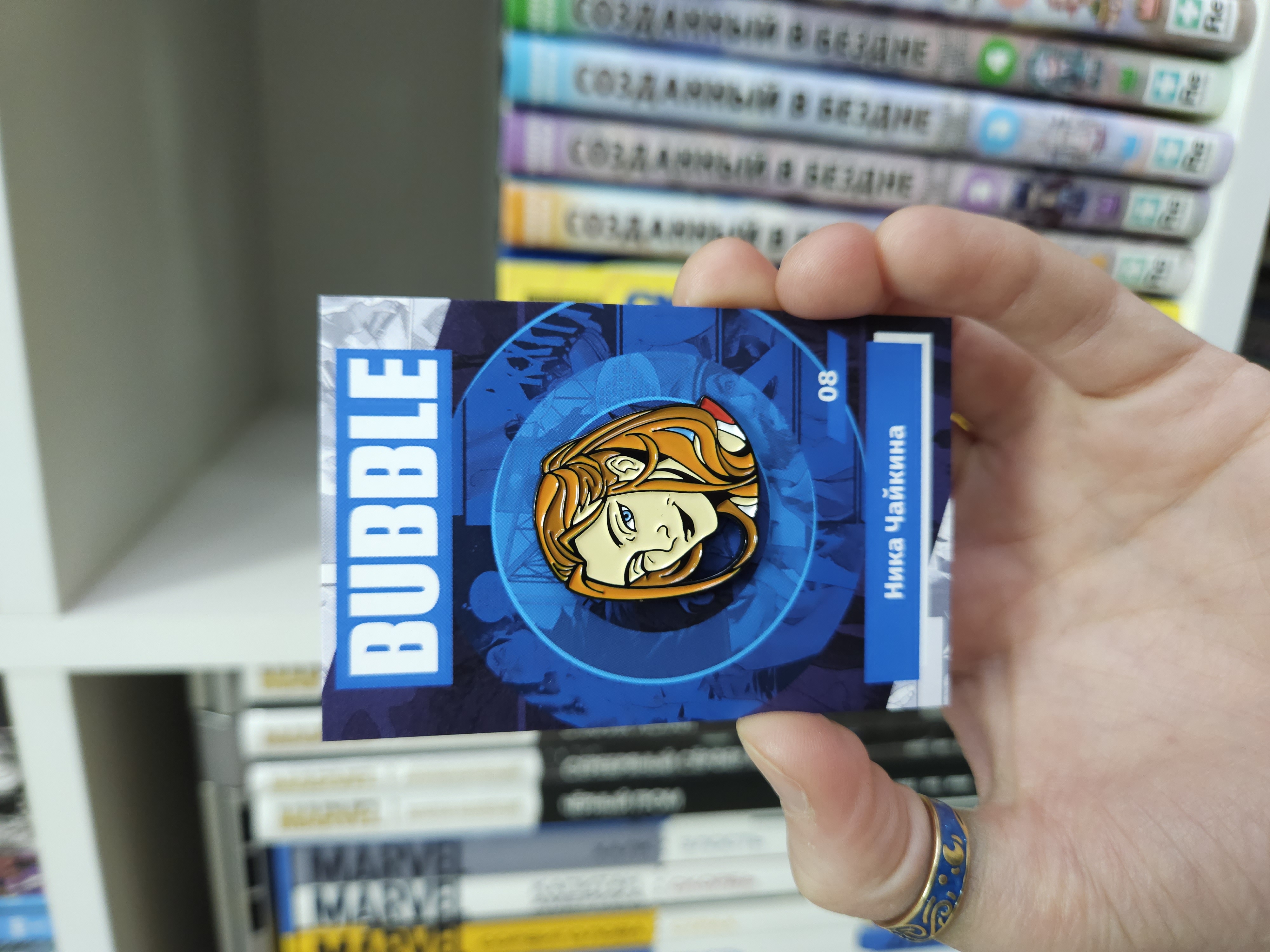 Металлический пин из серии по BUBBLE с Никой Чайкиной из серии Союзники.