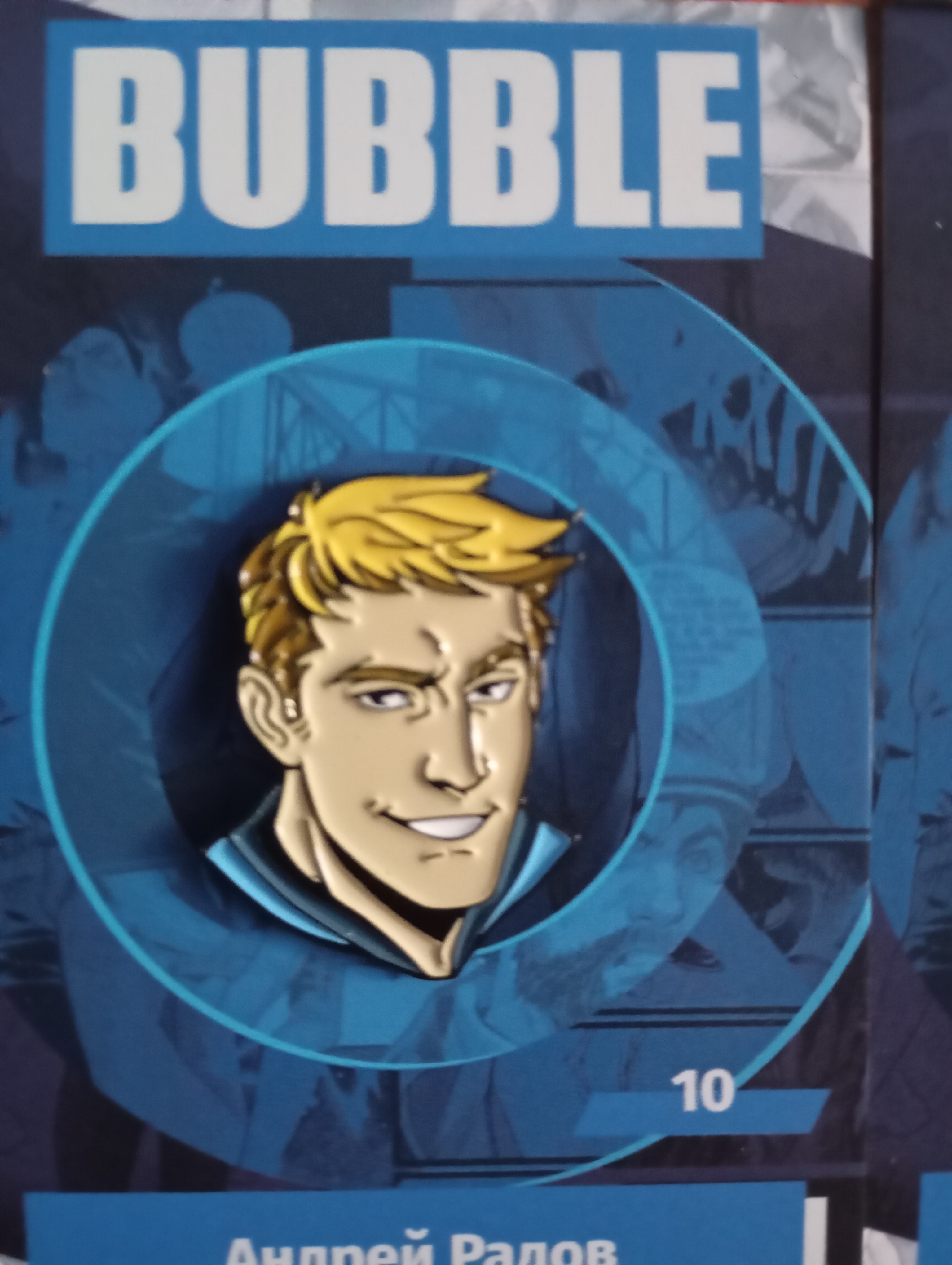 Металлический пин из серии по BUBBLE с Андреем Радовым из серии Мироходцы.