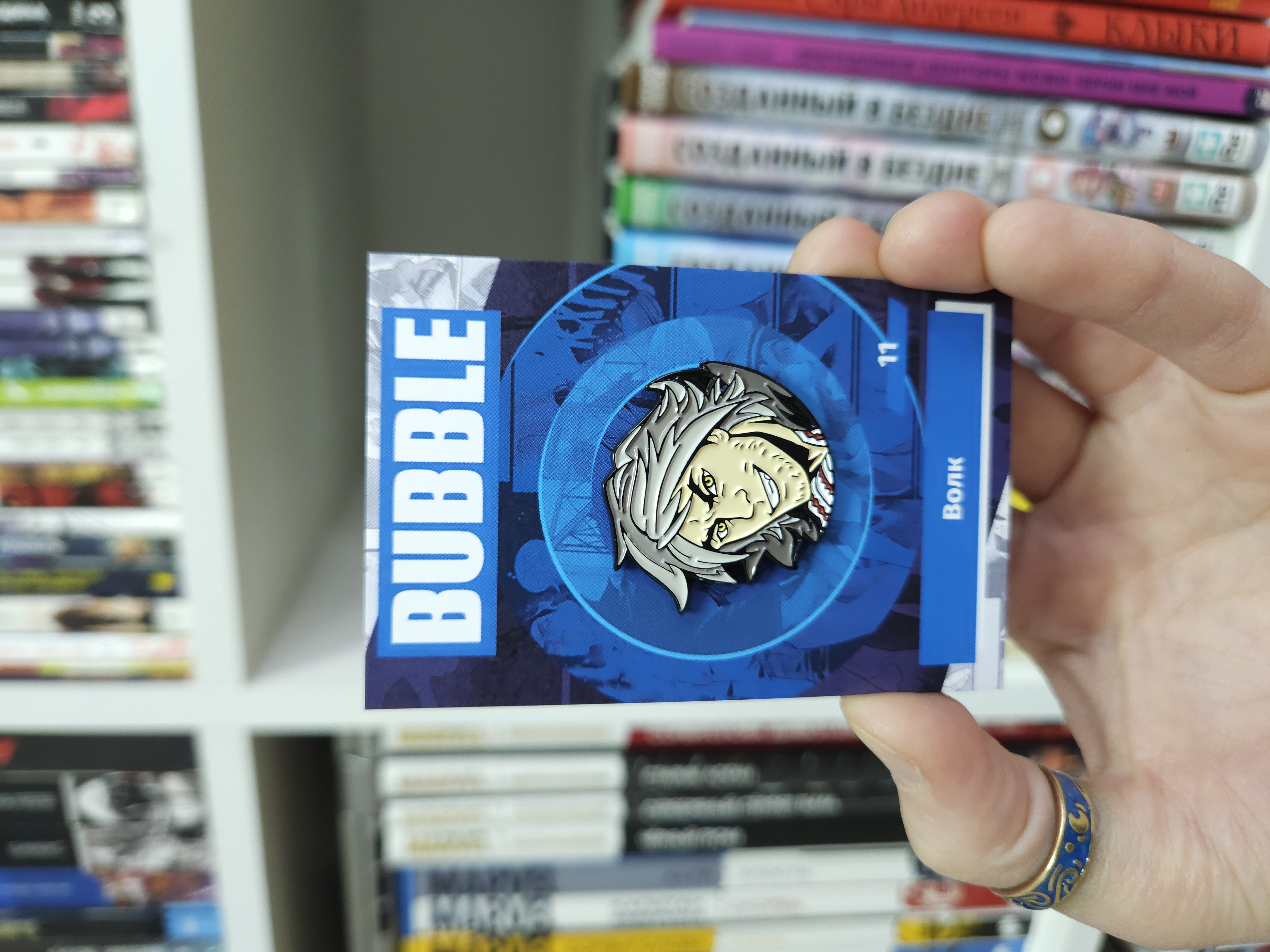 Металлический пин из серии по BUBBLE с Волком из серии Мироходцы.