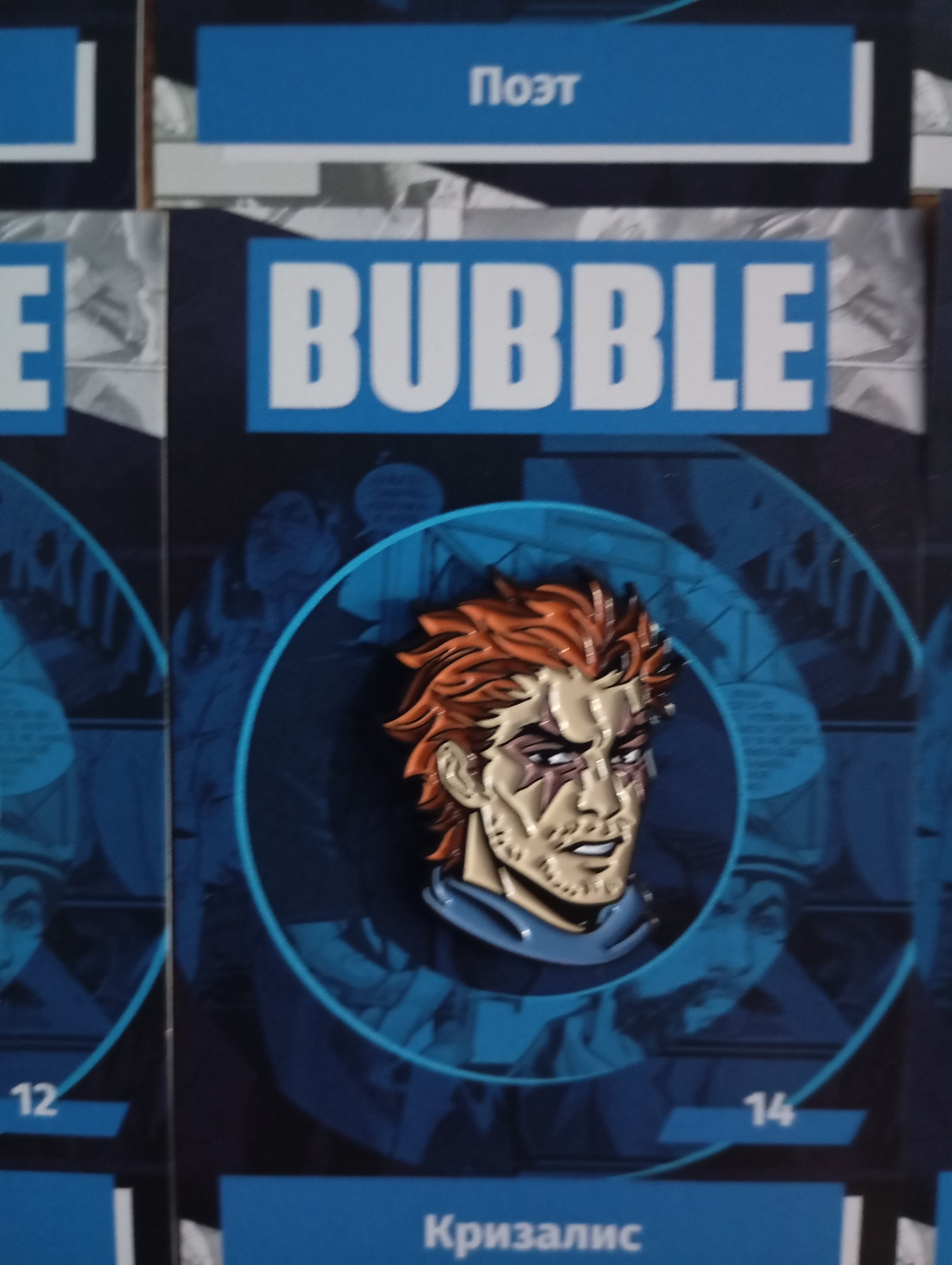 Металлический пин из серии по BUBBLE с Кризалисом из серии Игорь Гром, пациентом Рубинштейна, обрётшим невероятную силу, но вынужденным противостоять своему животному началу.