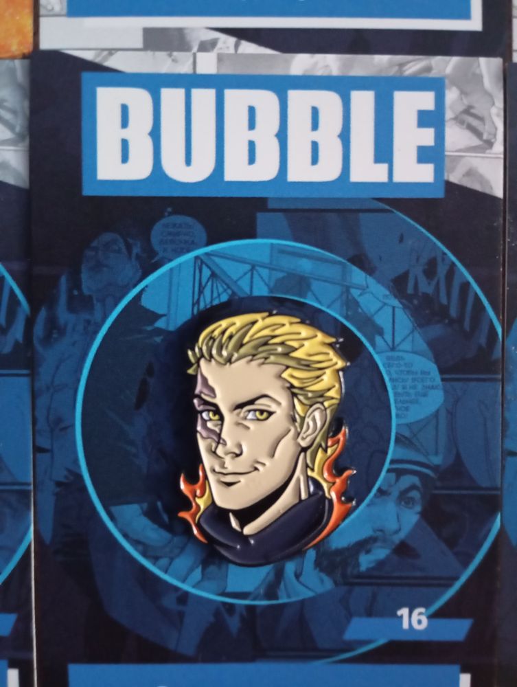 Металлический пин из серии по BUBBLE с Огнепоклонником из серии Игорь Гром, могущественным телепатом с пристрастием к огню.