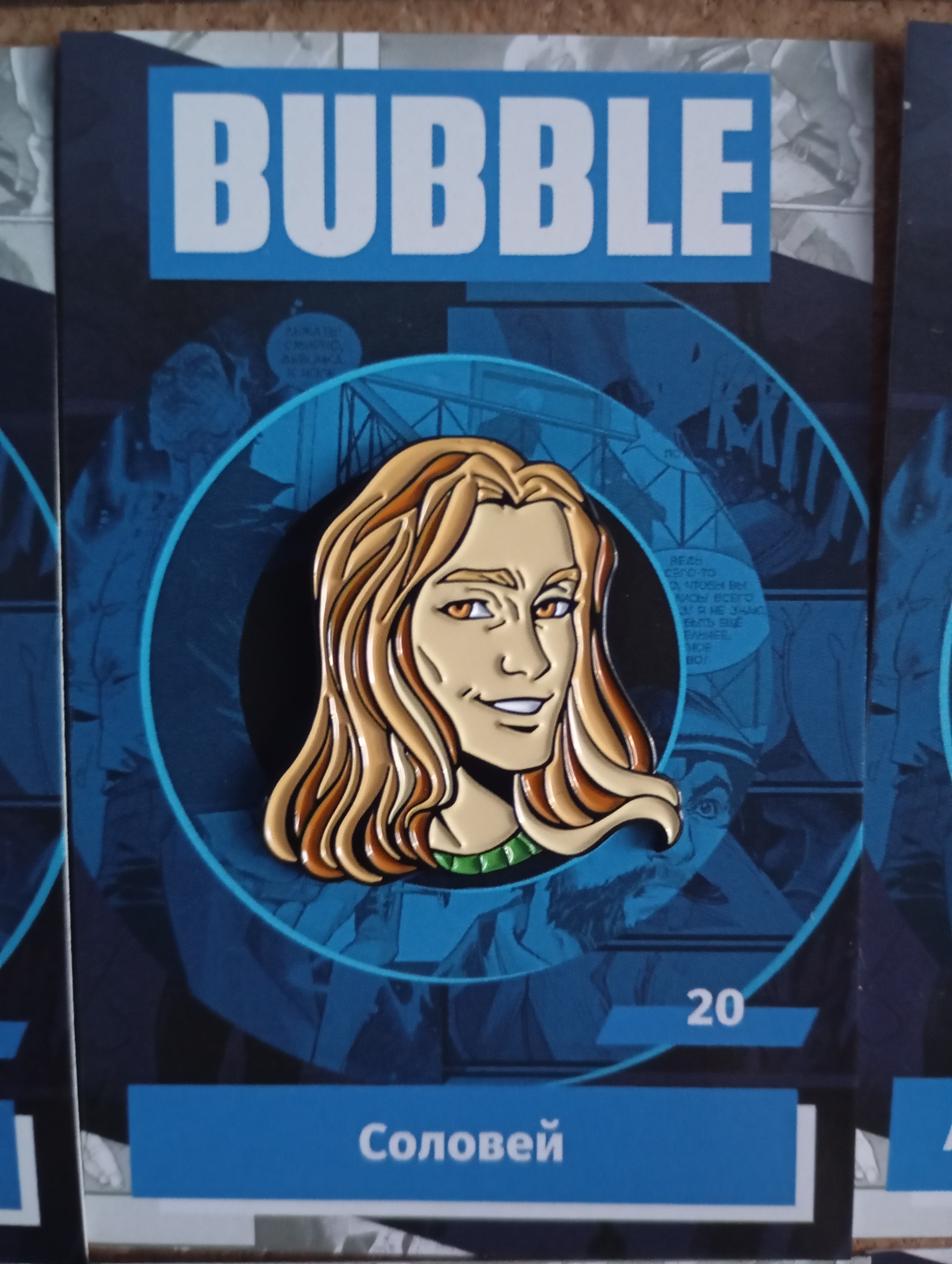 Металлический пин из серии по BUBBLE с обаятельнейшим книгочеем и персонажем Артуром Соловьём из серии Экслибриум. Сожги кроссовки - купи сандали!