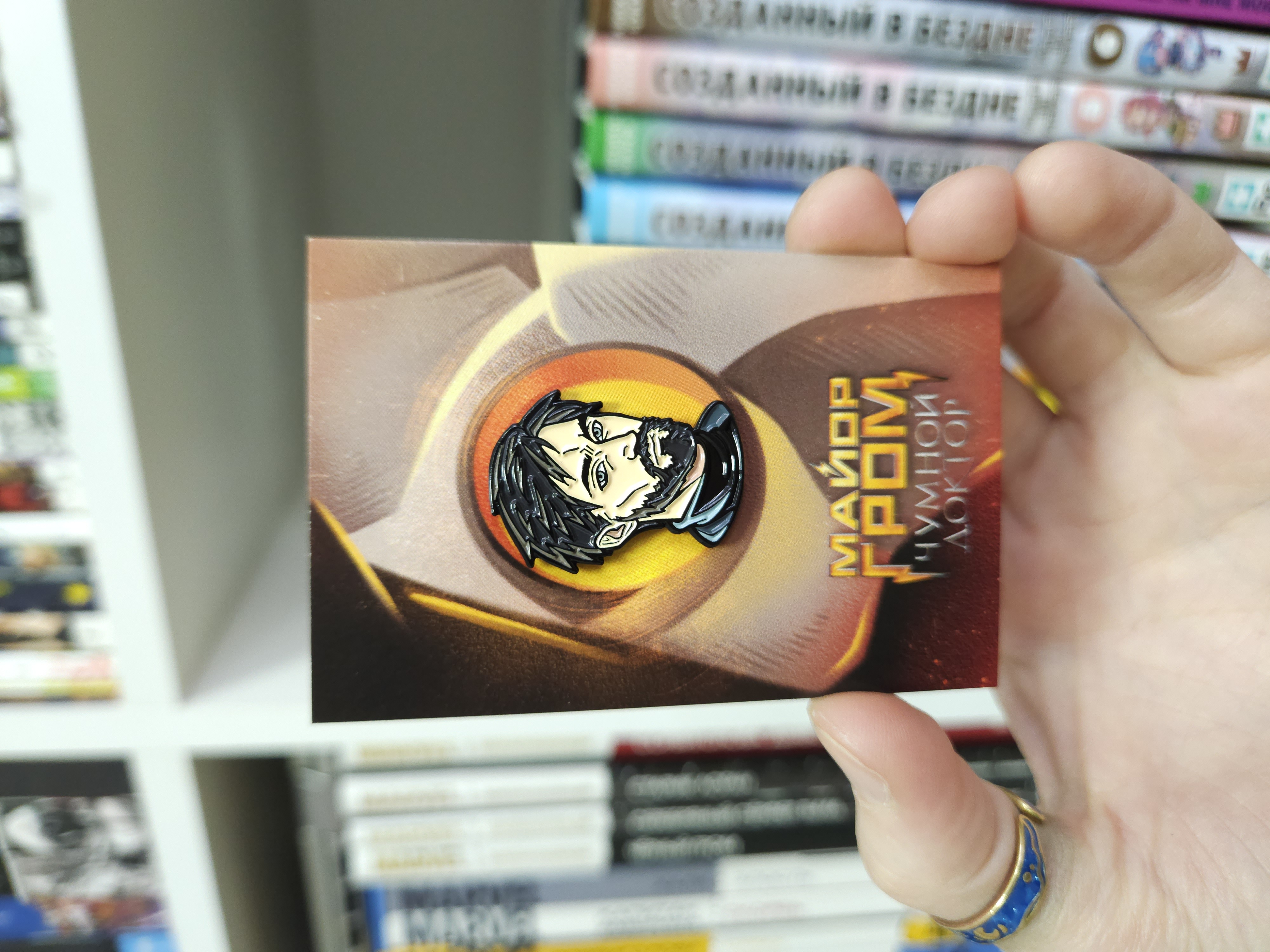 Металлический пин по фильму Майор Гром: Чумной Доктор с надёжным телохранителем Олегом Волковым (или скрывающейся в его образе Птице).
