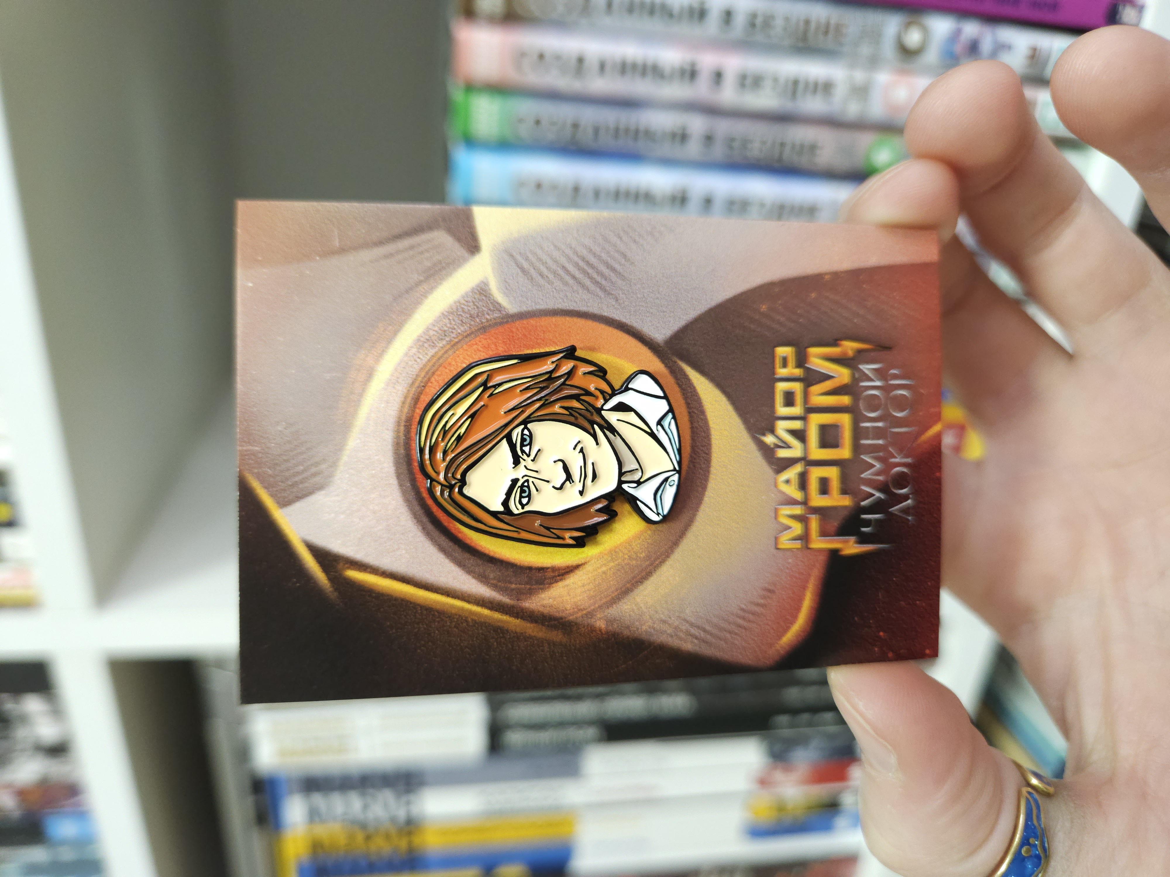 Металлический пин по фильму Майор Гром: Чумной Доктор с Сергеем Разумовским, технологическим гением со светлыми помыслами.