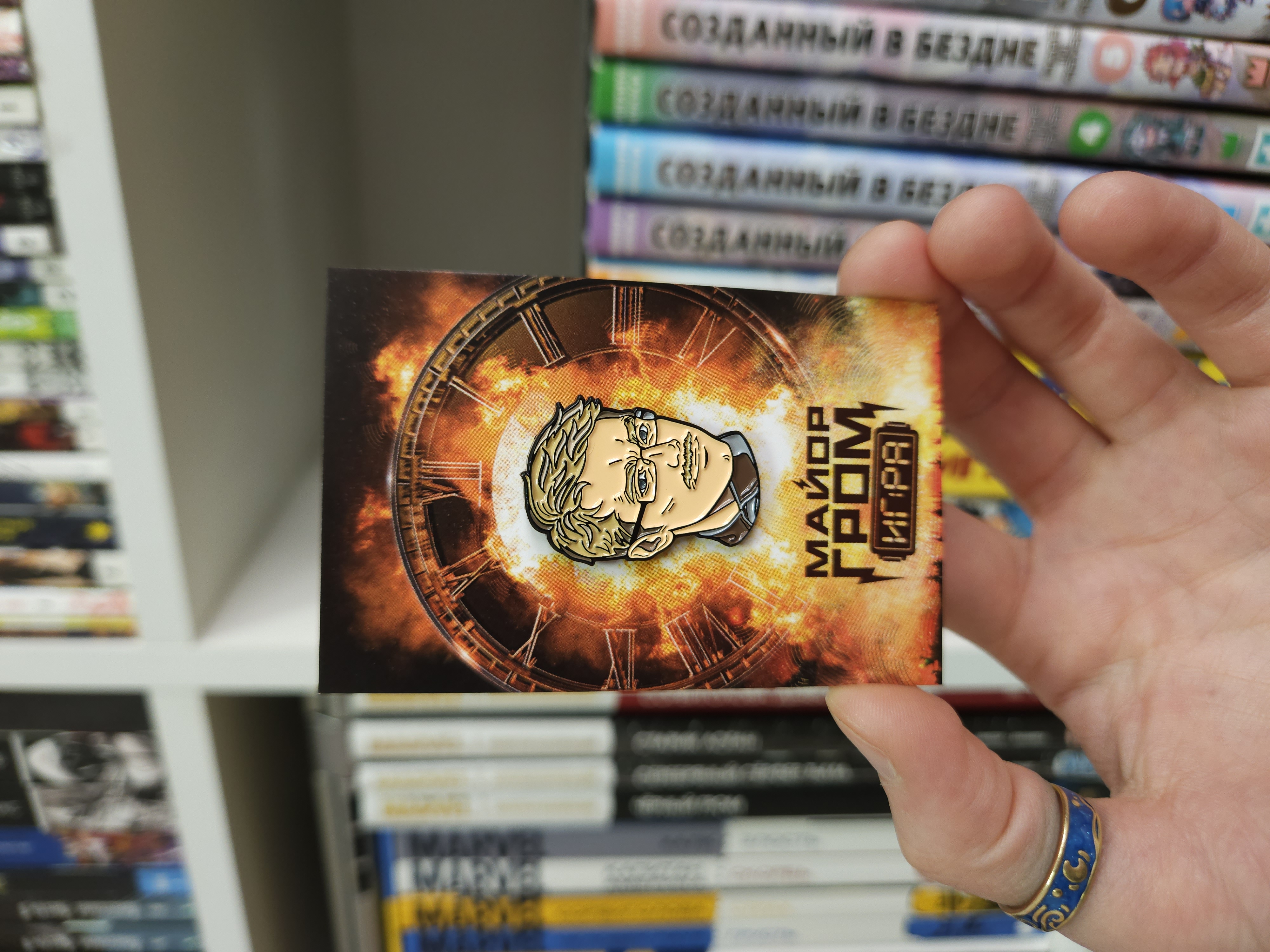 Официальный мерч по фильму Bubble Studios - Майор Гром: Игра! Верный напарник Игоря, запечатлённый в момент, когда он уже готов начинать своё дело, но ещё не готов сбривать усы (полгода же отращивал!). Будет кайфово смотреться на вашем рюкзаке/сумке/рубашке/футболке/предмете-на-который-можно-нацепить-пин или даже просто на полочке (ведь он так круто смотрится на подложке!)