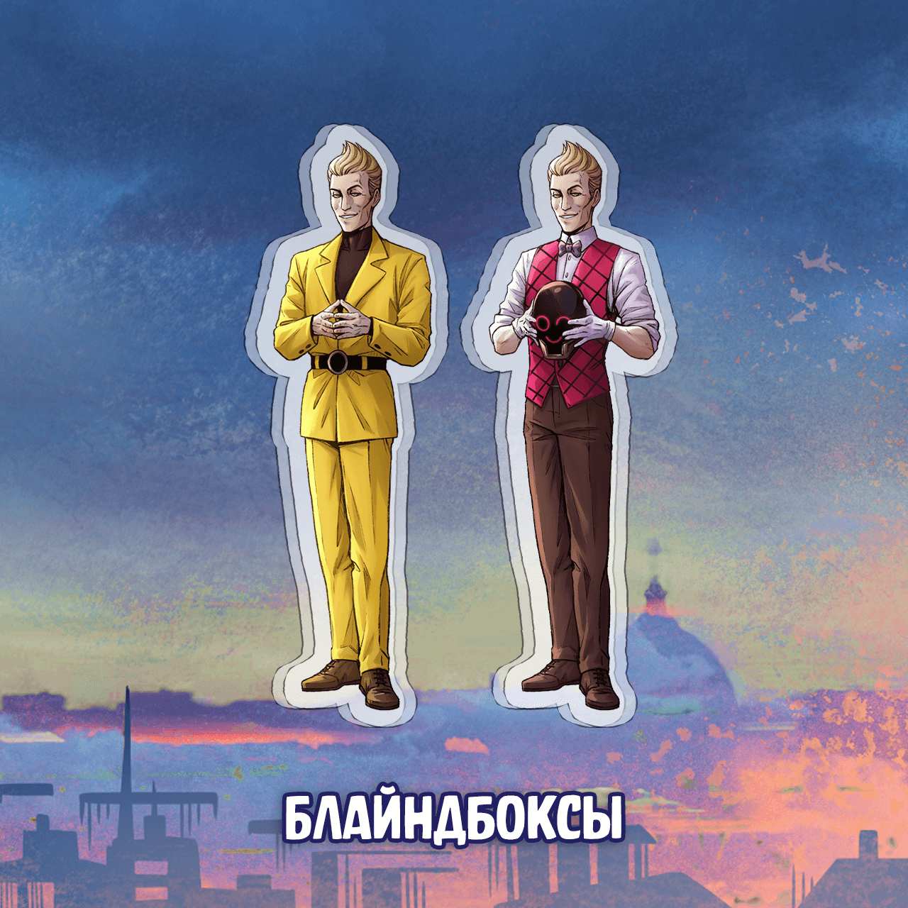 В каждом боксе вас ждёт случайный мини-акриловый стенд (8 см.), а также специальная карточка: на одной стороне будет фон для стенда, чтобы можно было вставить его в подставку, а на другой будет персонаж (тот же, что попадётся на стенде) — так карточки образуют собой отдельную коллекционную серию.