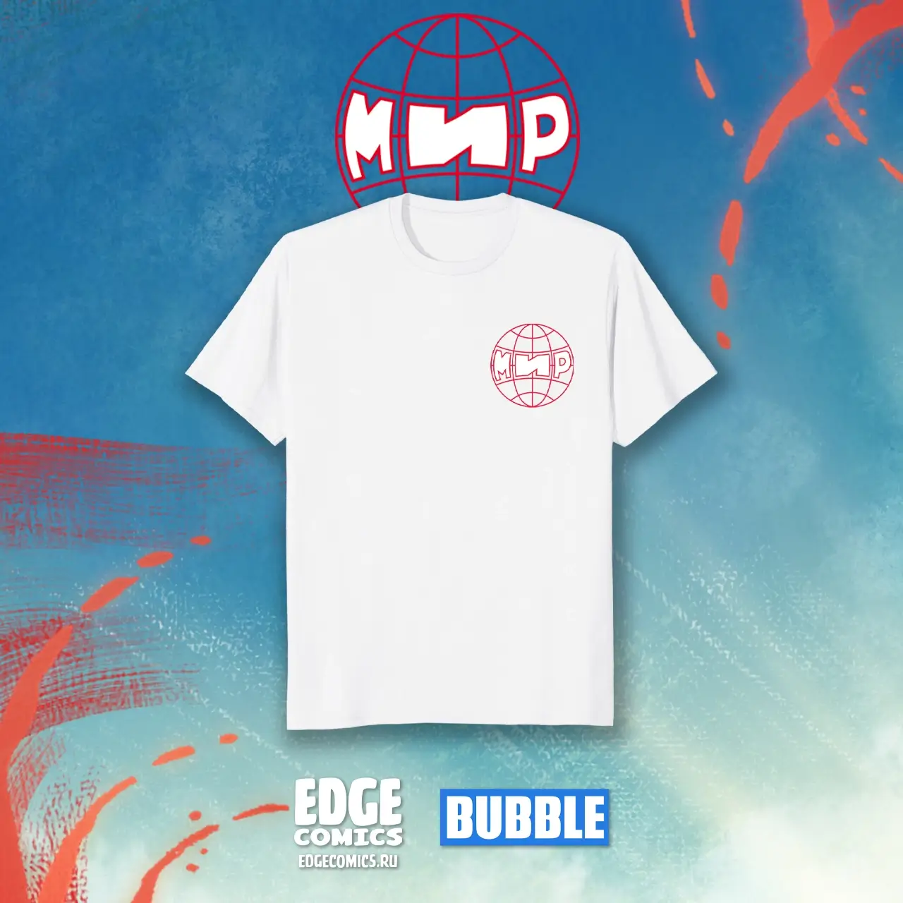 И пусть об этом узнают все с этими МИРовыми футболками! Грандиознейший трибьют от великолепного Влада Здора, объединивший в себе важнейших персонажей комикса за всю его пятилетнюю историю. Доступен в двух версиях: основной и эксклюзивной "советской", приобрести которую можно только в рамках крауда, в свободную продажу эта версия не поступит. А также две стильные футболки с символом серии - белый вариант также эксклюзивен и доступен только в рамках крауда, не упустите!