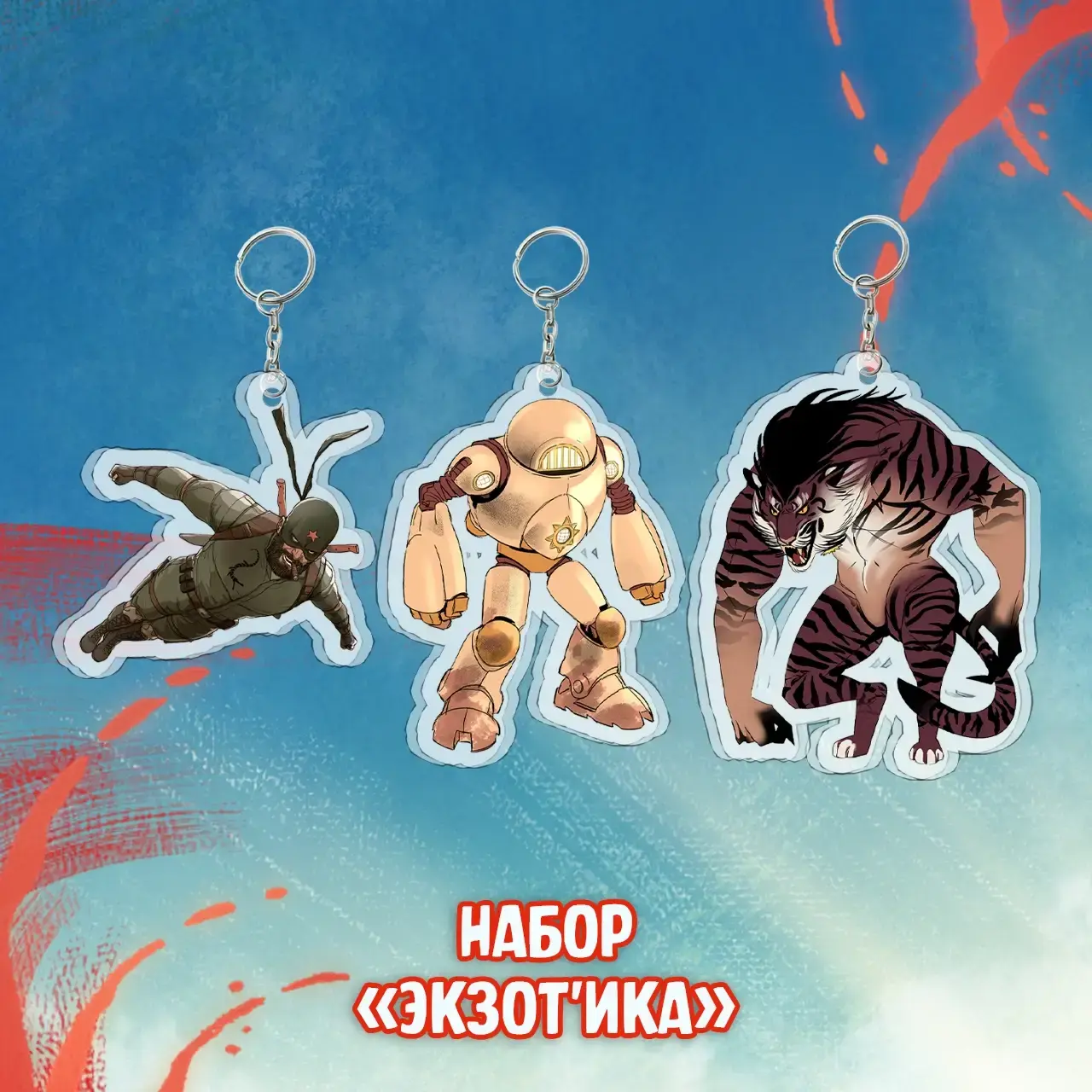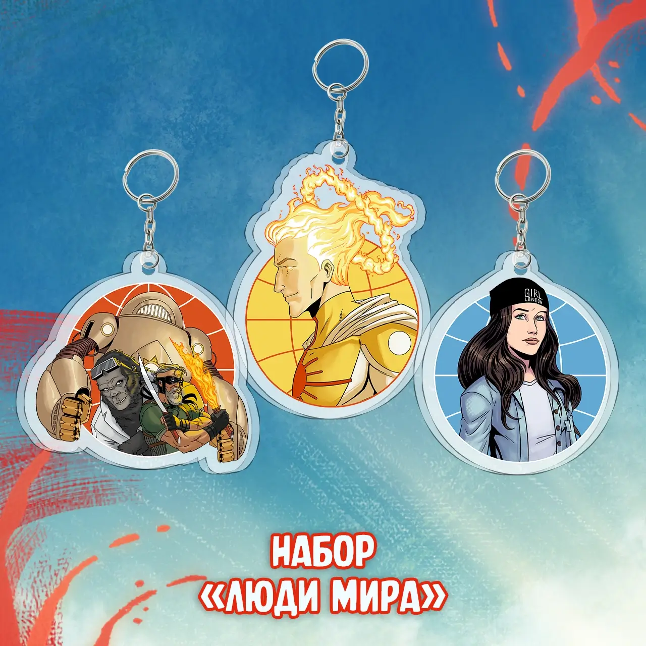 Как хорошо, что у нас тут не только Мир, но и другие любимчики в трёх разнообразных наборах акриловых брелоков! Ярчайшие Фаэтон, Саша и Ярило с Венганзой и Профессором Примато в сете "Люди МИРа" от Влада Здора. Обаятельные милаши Мир с Сашей, Фаэтон и Венганза от Натальи Kay Заидовой в наборе "Мир и друзья". И эпичные сверхлюди Венганза от Мадибека Мусабекова с Жолбарысом и Ярило от Таи Макаревич в наборе "Экзот'ика".
