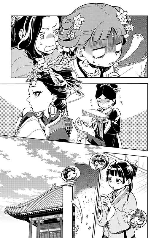 На глазах Маомао дворец императорских жен избавляется от наложницы Адо и ее главной служанки и вместе с тем проводит чистку среди прислужниц. Маомао тоже пытаются рассчитать, но Дзинси не позволяет ей удалиться. Он выкупает ее у Малахитового чертога и нанимает на службу во Внешнем императорском дворце. Вскоре в «цветник» императорских жен прибывает новая наложница, которой назначен высший ранг. Так почему госпожа Гёкуё и госпожа Лихуа снова требуют Маомао к себе? Чем еще она может услужить?