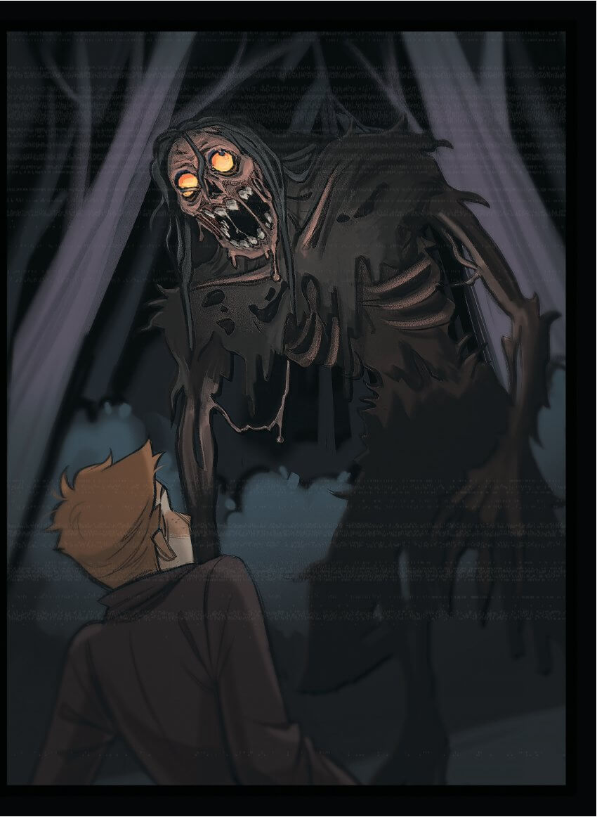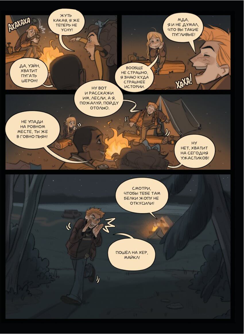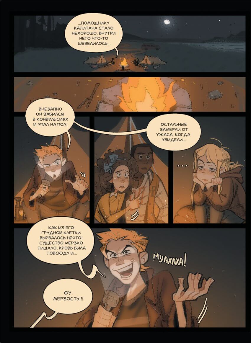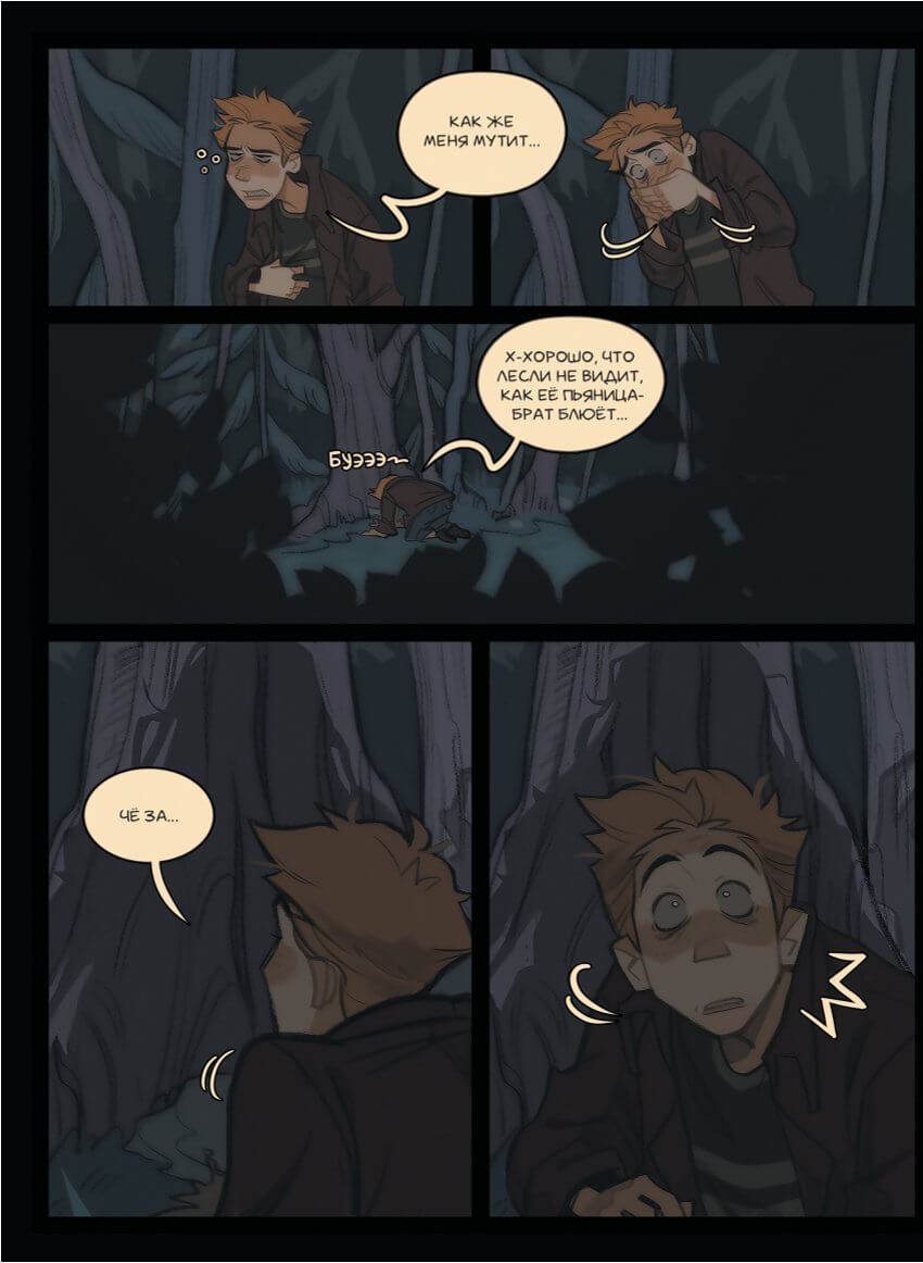 «Мрачные тайны Дезвиля» — дебютная работа российской художницы Cursy, сделанная с любовью к кинематографу 80-х и классике рока. Рисунок отсылает к старой анимации и ретро-эстетике VHS-кассет. Отличный вариант для тех, кто уже скучает по «Очень странным делам» и мечтает продлить загадочные приключения в американской глубинке.