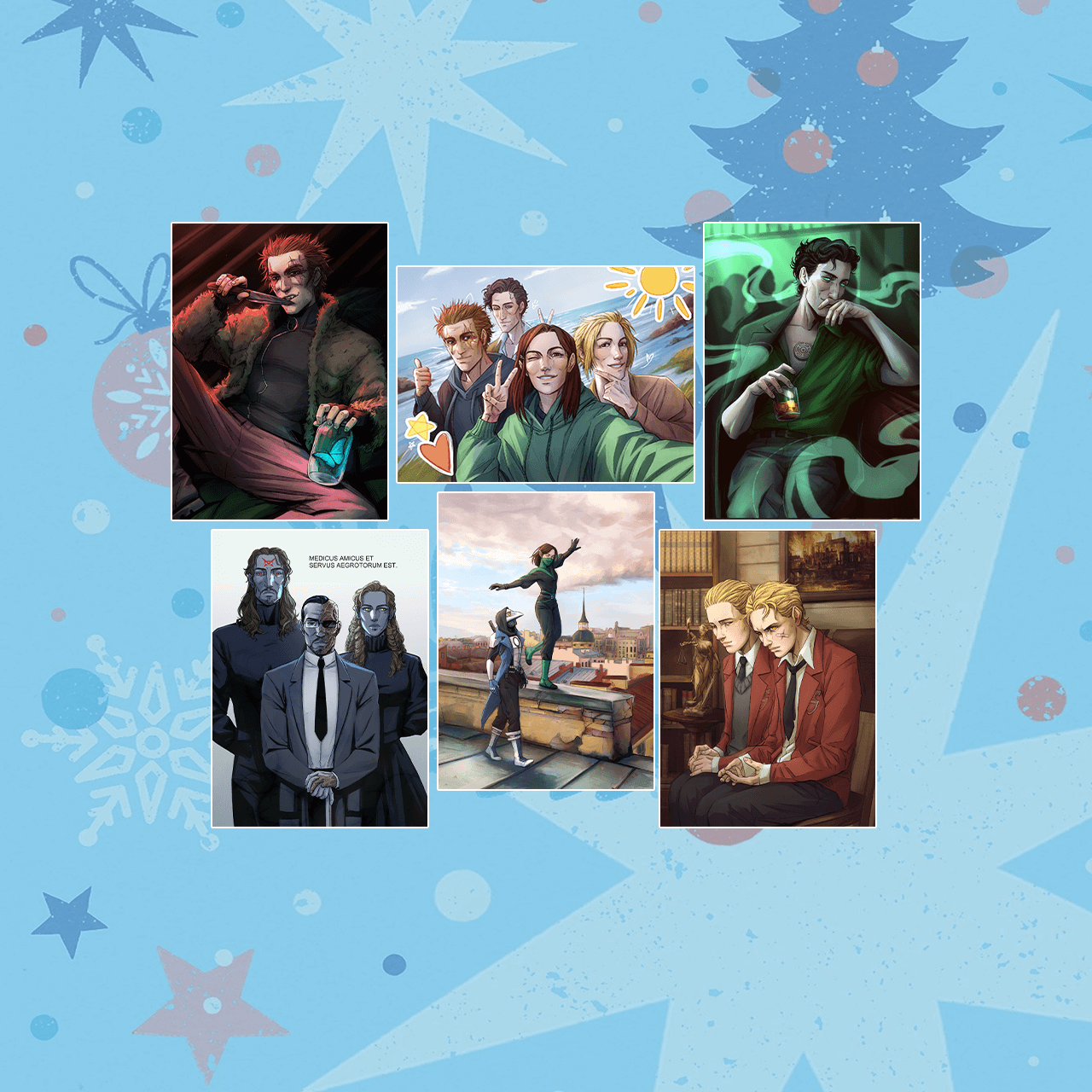 Авторский сет из серии EDGE Talent от chAsMou. В этой серии мы даём художникам полную творческую свободу создать подборку из 6 артов по любимым вселенным. Персонажи, композиции и сюжеты — всё на усмотрение творца и в соответствии с их видением.