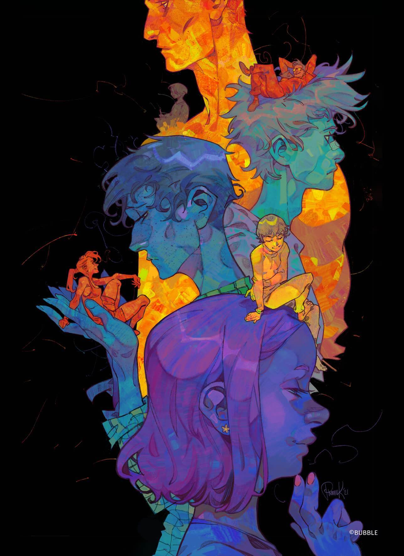 Атмосферная открытка по серии Экслибриум с героями книги Красная строка: Григорием Локтевым, Матвеем Корецким, Антоном Варчуком, Евгенией Лунёвой и Тамарой Леской.