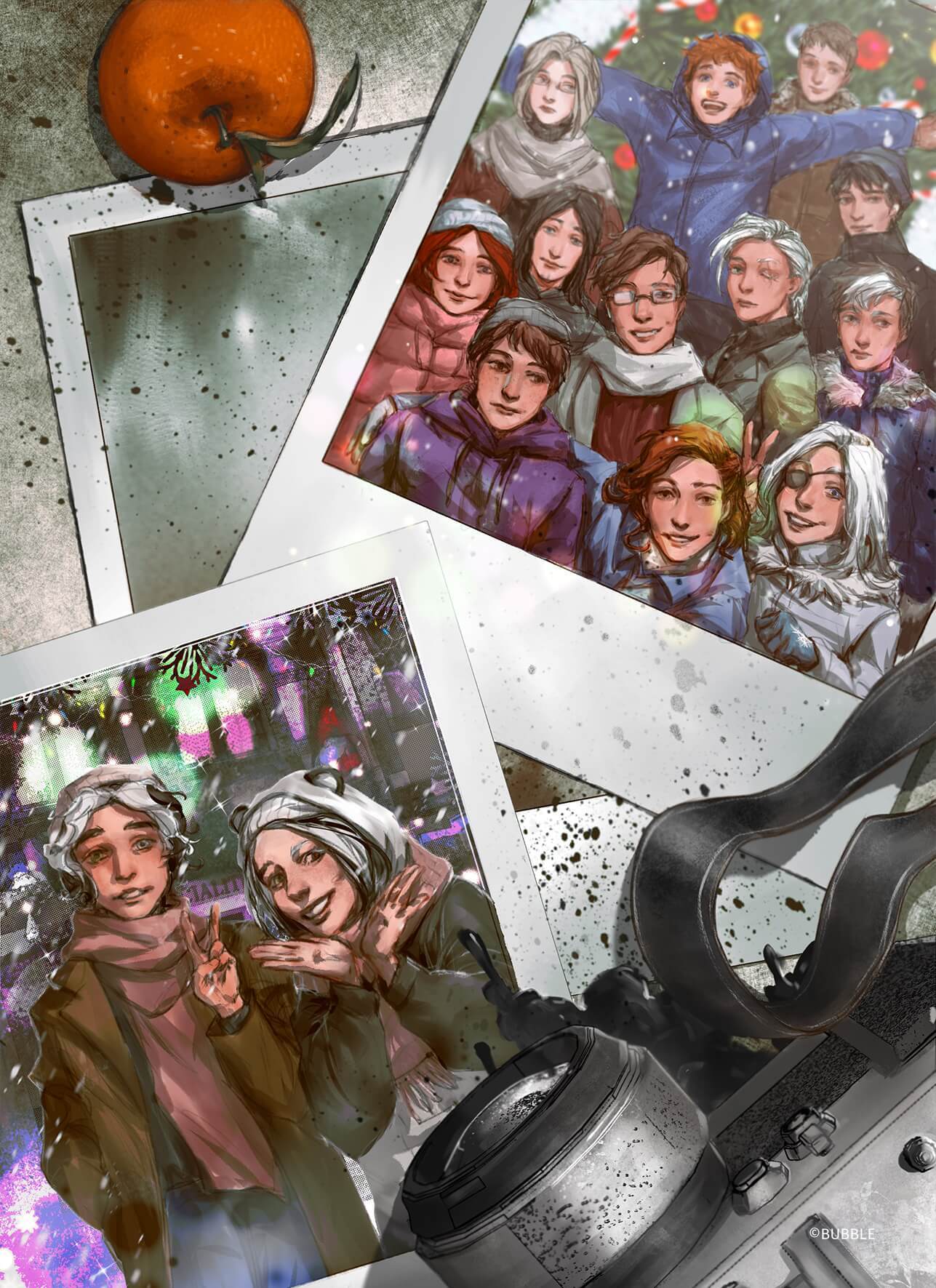 Атмосферная (и слегка печальная) открытка по серии Экслибриум со студентами Библиотеки в полном составе, застывшими в светлом моменте.
