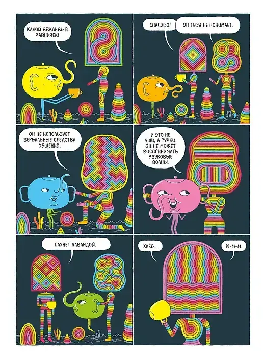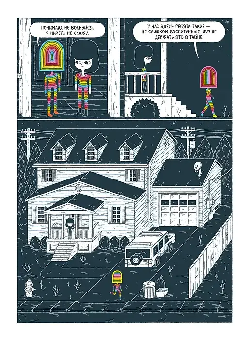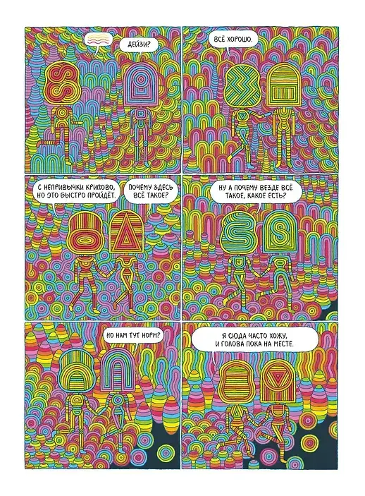«Подпространство» — психоделическая метафора взросления от канадского художника Джесси Джейкобса, объединяющая элементы сюрреализма, подростковой драмы и философии. Каждый разворот этого произведения — визуальное пиршество, где тщательно проработанные детали и яркие цвета создают атмосферу, погружающую читателя в мир, который одновременно пугает и восхищает.