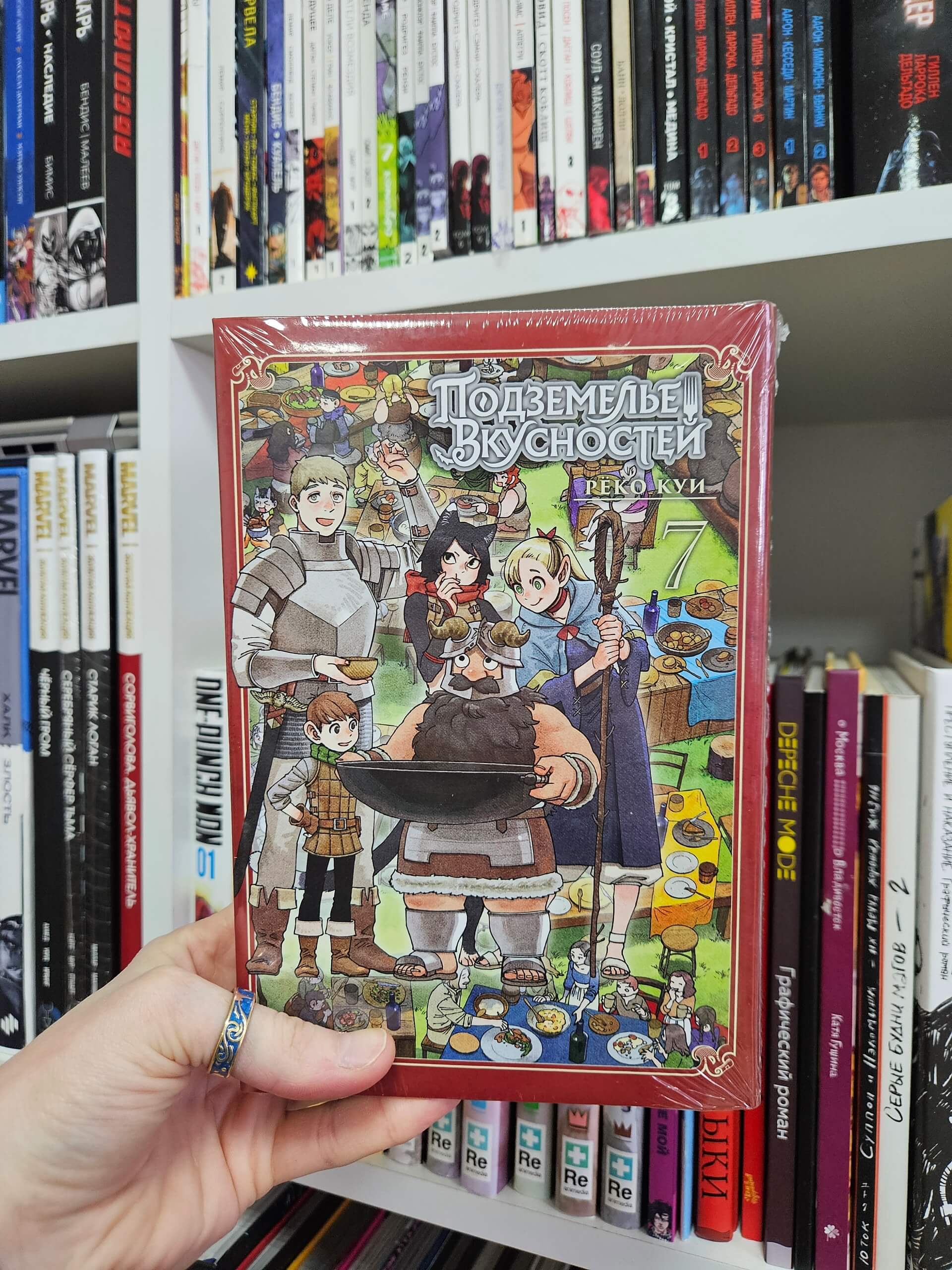 В книгу вошли 13-й и 14-й тома оригинальной манги, 11 глав, эпилог «Подземелье вкусностей» и бонус «Беседы о монстрах» (13-14): «Крылатый лев» (1-6), «Остров», «Фалин» (1-4).