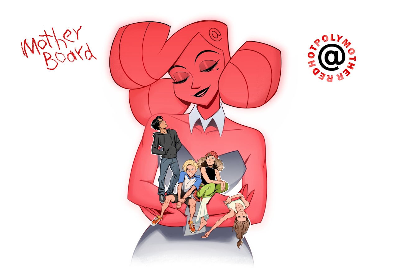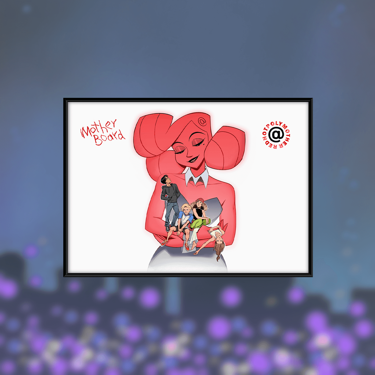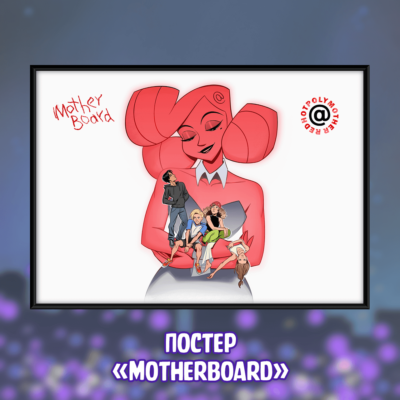 Эксклюзивный постер из музыкальной серии "BUBBLE Дискотека" с Читерами, героями одноимённого комикса, в любящих объятиях Полиматери.