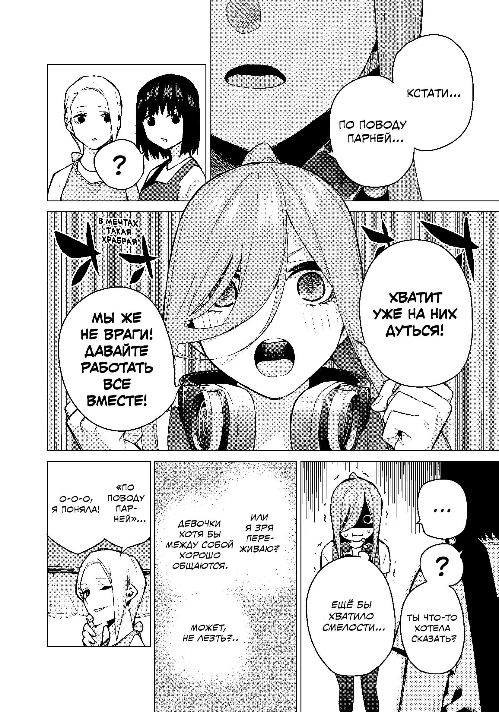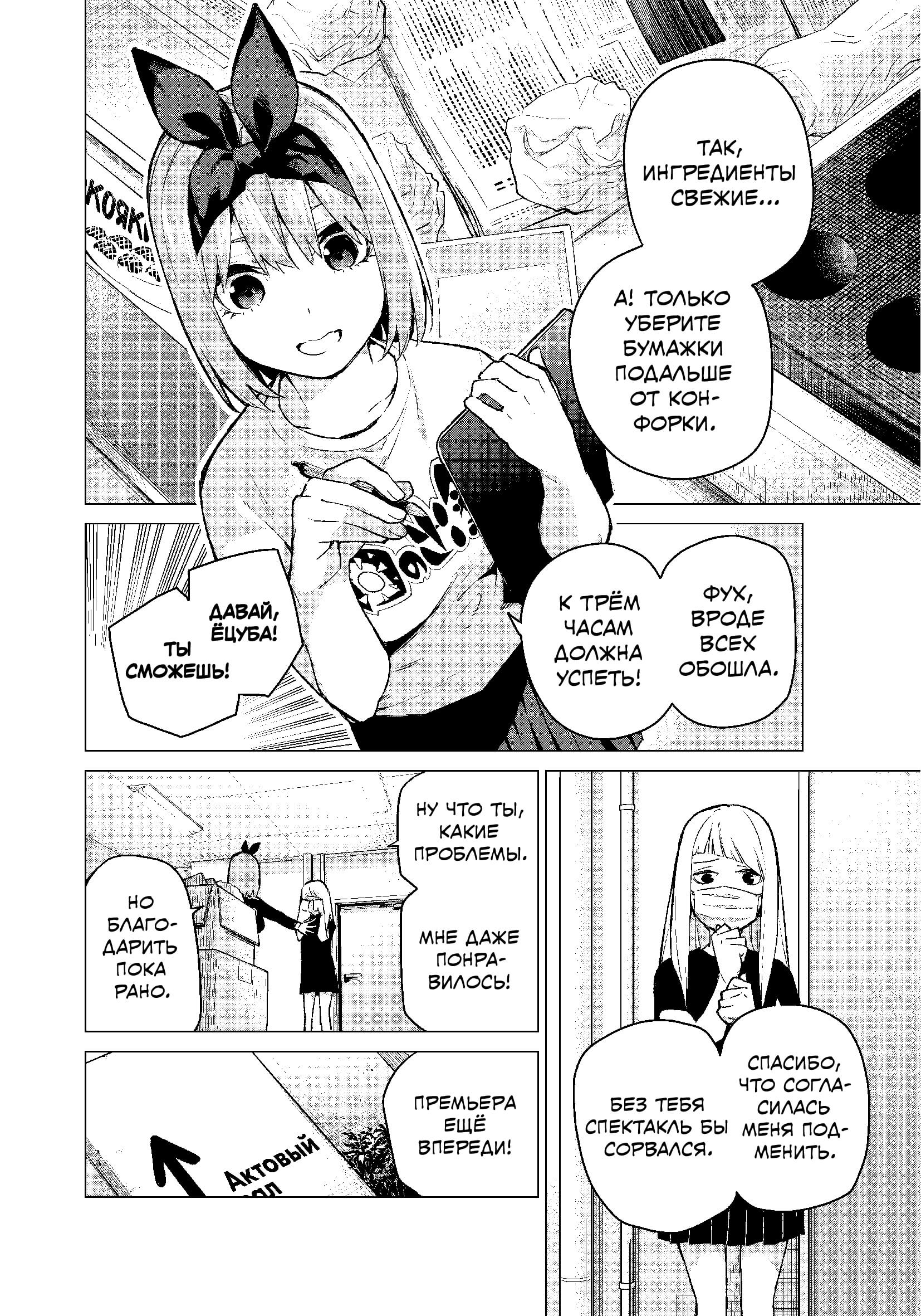 Последний фестиваль перед выпуском – большое событие: шутка ли, кульминация всей школьной жизни! А для Футаро и пятерняшек эти несколько дней особенные ещё и потому, что секреты прошлого и настоящего наконец-то раскрываются... Какими дорогами девочки пойдут после школы, и кто из них всё-таки станет невестой Футаро?