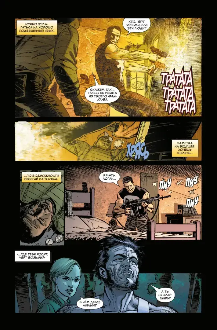 Ответ вы найдёте в брутальном сборнике лучших противостояний (и сражений бок о бок) Росомахи и Карателя! Хладнокровные убийцы, которые могут потягаться в числе жертв лишь друг с другом, не ладят ещё со времён первой встречи в африканских джунглях. Вместе им придётся справиться с двойником Карателя Уроном, повоевать с Архитектором и отправиться под землю, чтобы познать Откровение. Они будут сражаться в джунглях и в Мадрипуре (причём с небольшой армией)! А вишенкой на торте станет кровавая история Гарта Энниса! Что же такое Фрэнк сделает с Логаном? За что мутант придёт мстить? Сникт! Сникт! Бам! Бам!