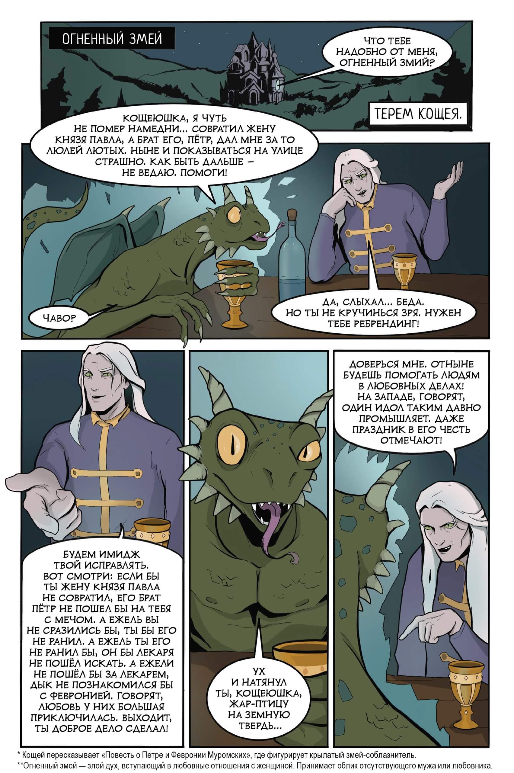 Встречайте новый сборник сказочно-хтонических комиксов Инны Рейхард, более известной как Серый волче! Вас ждёт особенный мир, где знакомые с детства персонажи славянского фольклора живут повседневной жизнью, полной юмора и неожиданных сюжетных поворотов. Среди приглашённых звёзд: Баба Яга и Кощей Бессмертный, русалка и леший, богатыри и ящеры — кого там только нет!