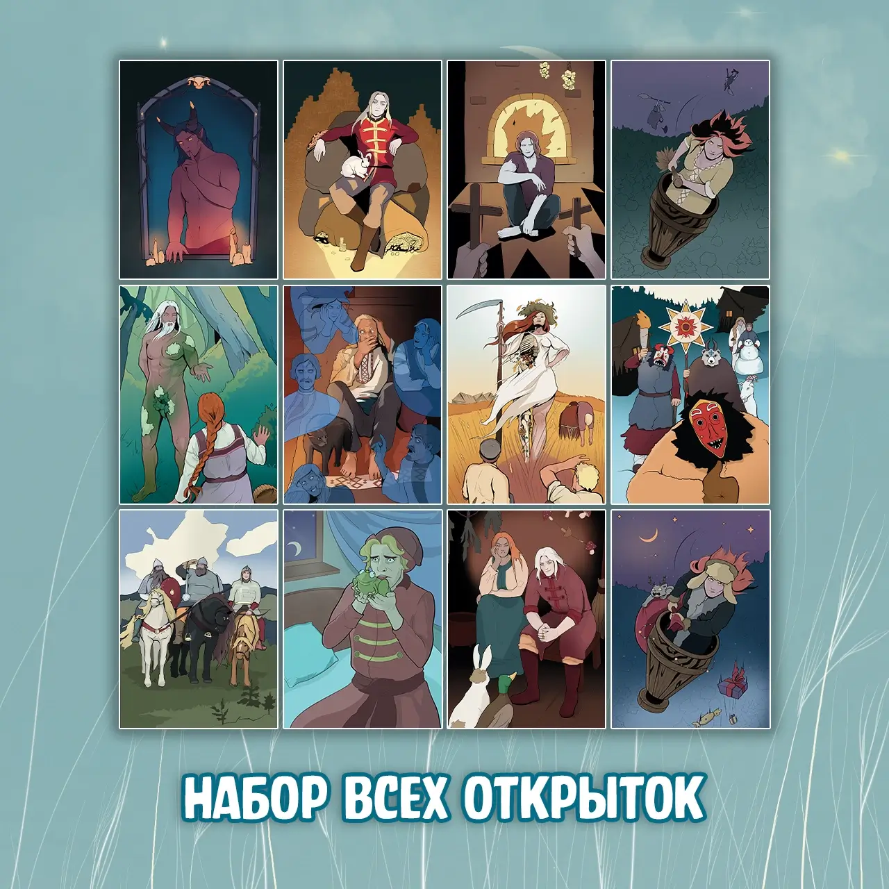 А как же! Подготовили сразу два набора открыток: набор "Всякая нечисть" по первому тому комикса и набор "Смех и Грех" по второму. Также набор открыток с Царевичем и новогодней Ягой не поместился в обычных паках и эти открытки можно добавить опцией к любому лоту крауда за 490.