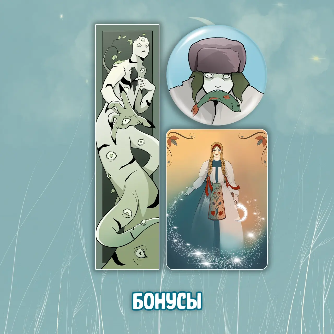 Самая большая гордость нашего хтонически-сказочного крауда это блайндбоксы, да не простые - в каждой коробке находится случайный покровитель из славянского фольклора, а вместе с ним и карточка с описанием, ну просто кайф! Шанс выпадения у всех одинаковый, кроме Водяного, за этим скользким гадом придётся поохотиться, но мы уверены - добыча того стоит