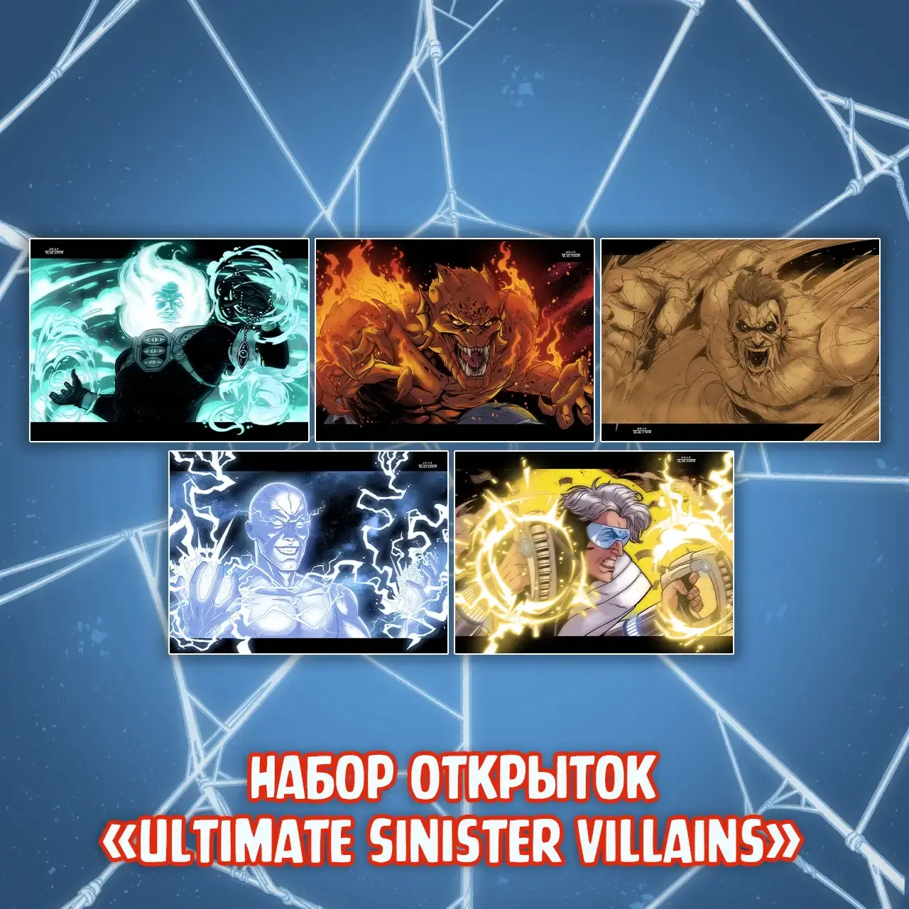 А как же! МОЩНО обновляем паучьи открытки - создали два пака с классическими врагами Человека-Паука, а если вам мало - есть наборы с алтимейт версиями персонажей. Каждый пак по 990.