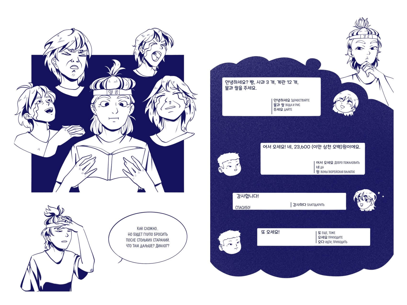 Автор комикса, Анжелика Грошева — не только талантливая художница, но и практикующий репетитор по корейскому языку с восьмилетним стажем.